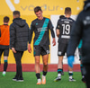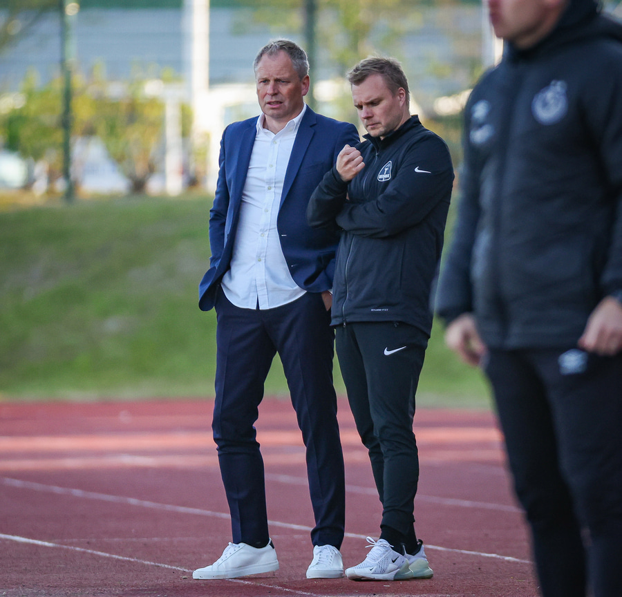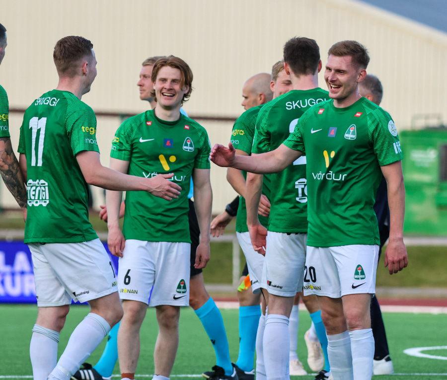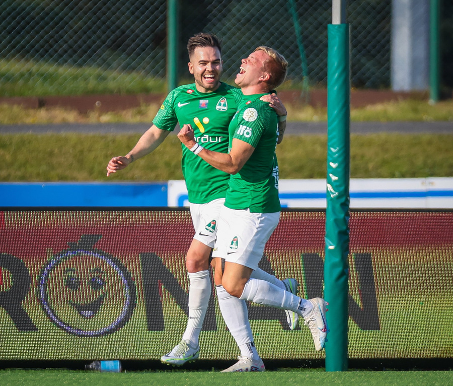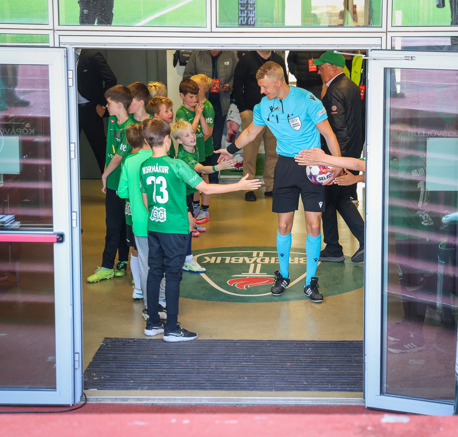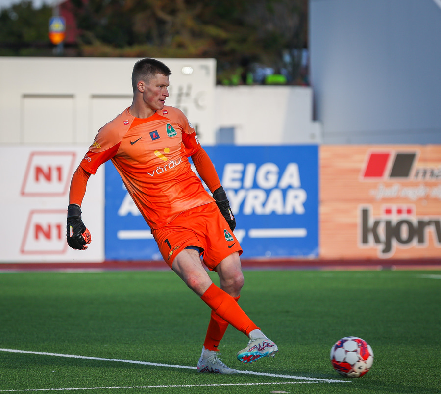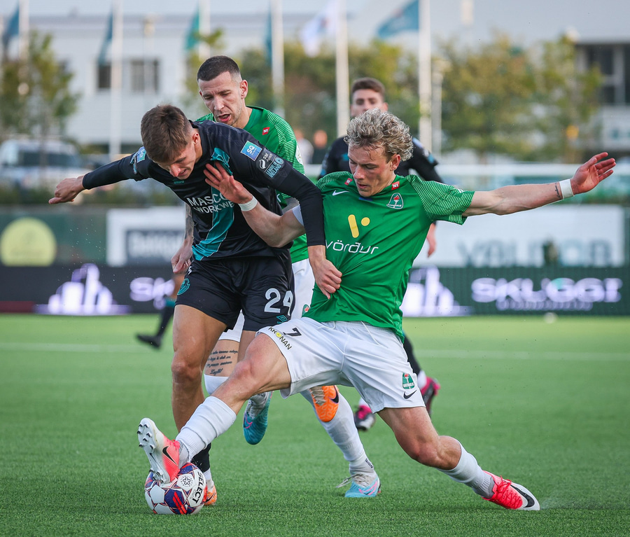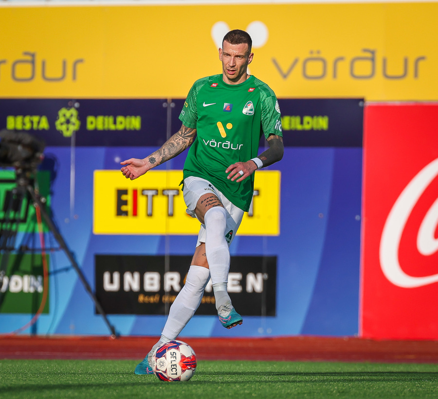 Höskuldur haltrar á vellinum og Arnór Sveinn er kallaður á bekkinn að gera sig klárann