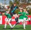 Stórhættuleg sending fyrir markið en enginn Írskur leikmaður kemur snertingu á boltann og endar í markspyrnu!