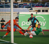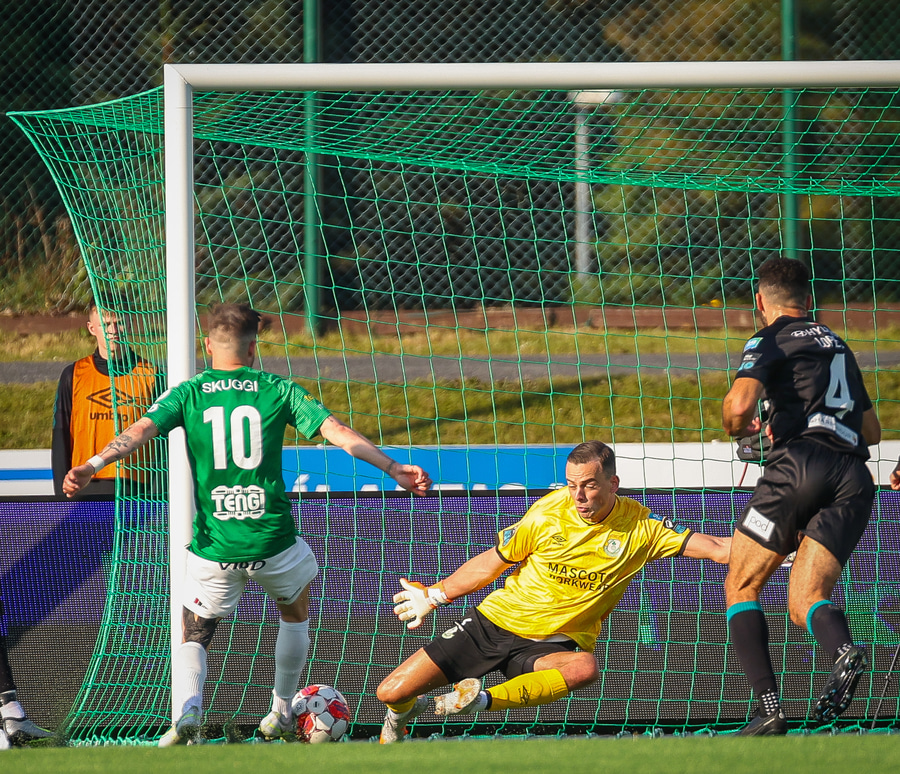 Kemst upp að teig þar sem hann leikur á varnarmann Shamrock og bara rennir boltanum mjög laust framhjá Pohls í markinu