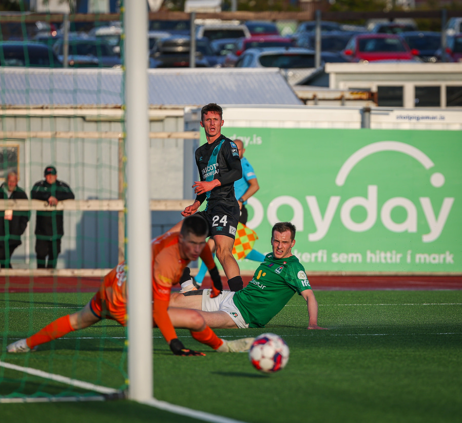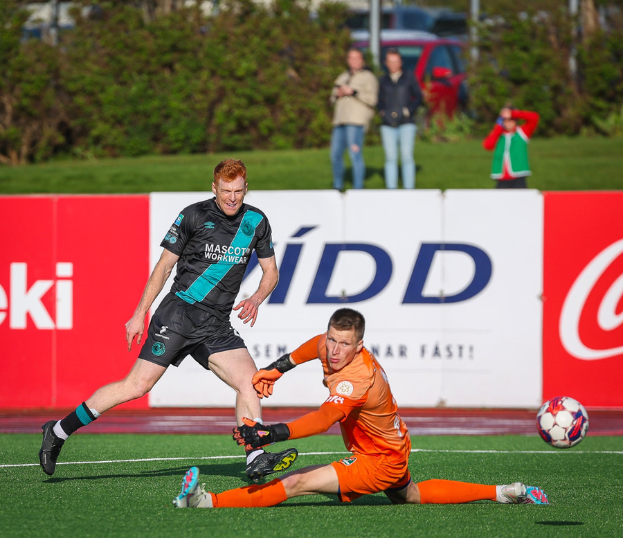Johnny Kenny með hörkuskot rétt framhjá markinu