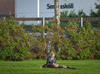 Skoppandi bolti inn í teig þar sem að Jason fer í 50/50 og fellur en sá sænski á flautunni segir nei!