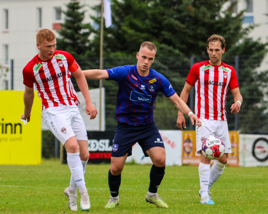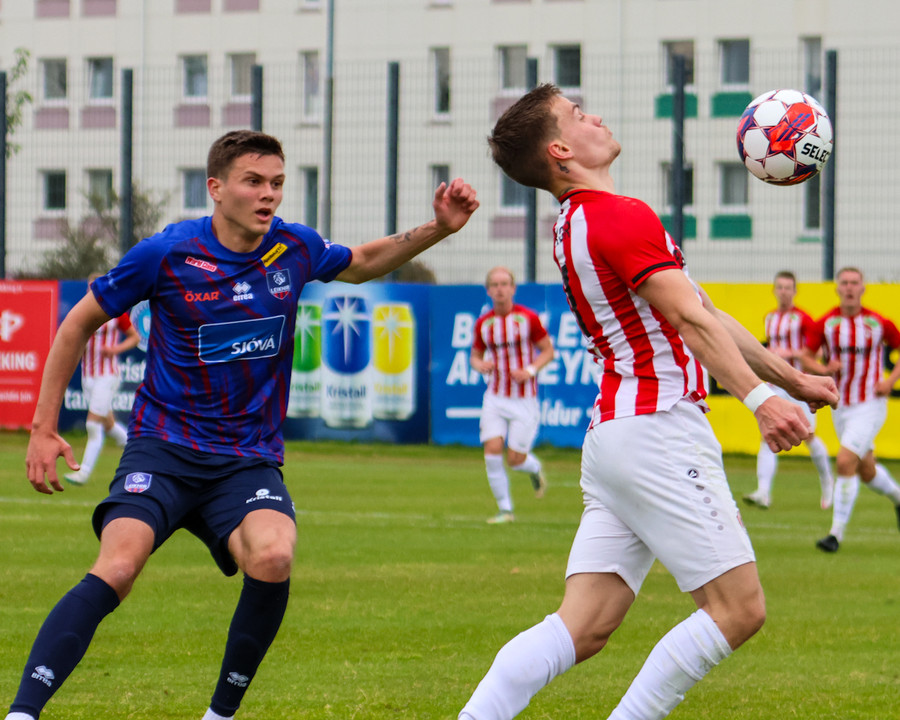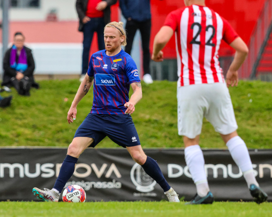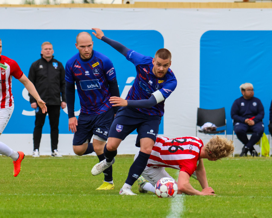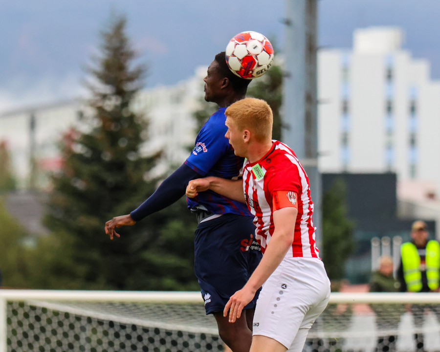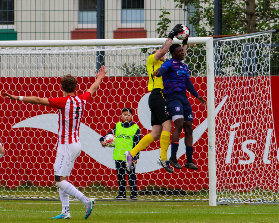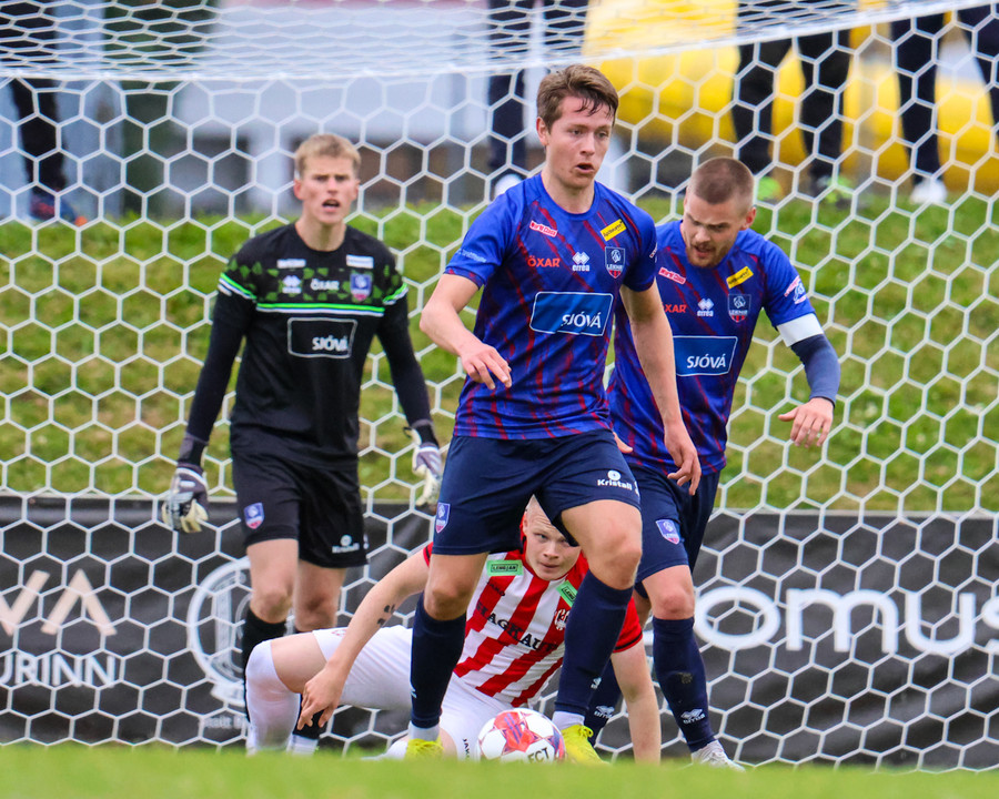 Róbert með geggjaða takta á hægri kantinum eftir að hafa fengið hann frá Sindra. Róbert kemur þá með mjög góða fyrirgjöf sem endar á Omar Sowe sem á fastan skalla beint á Svein Óla í markinu.