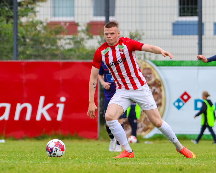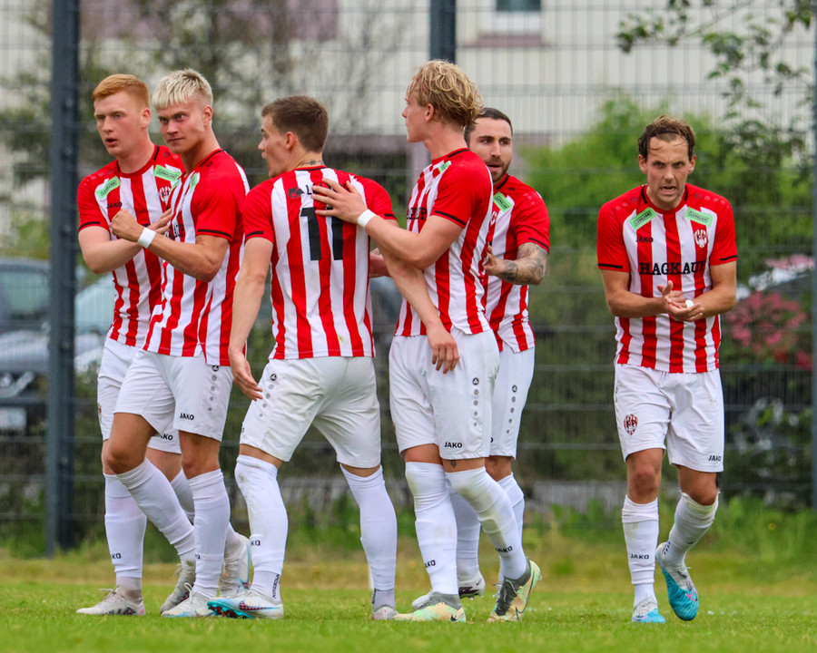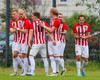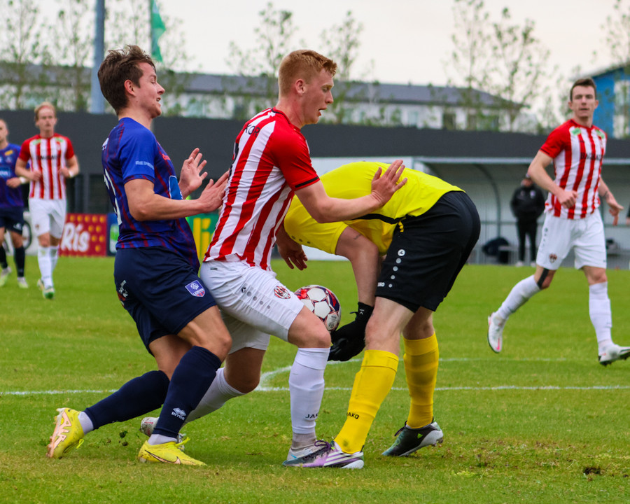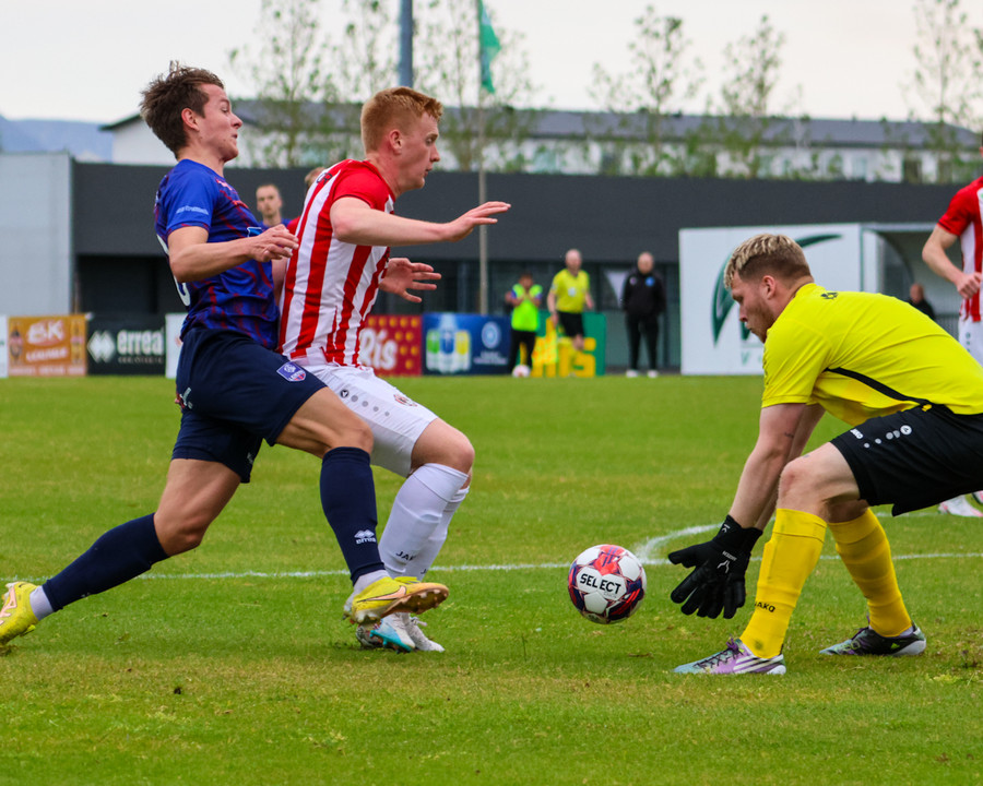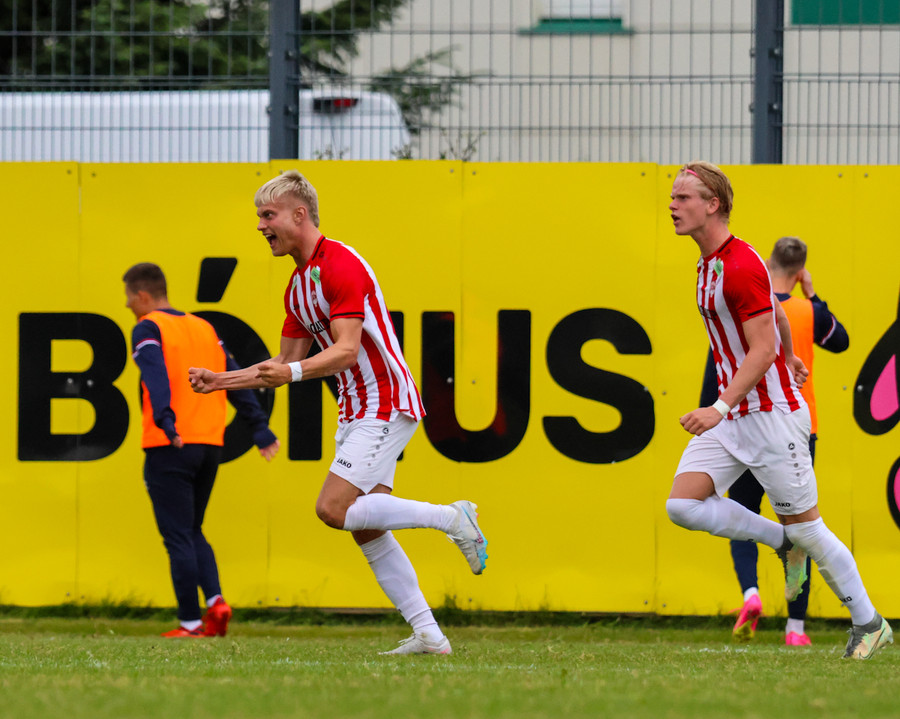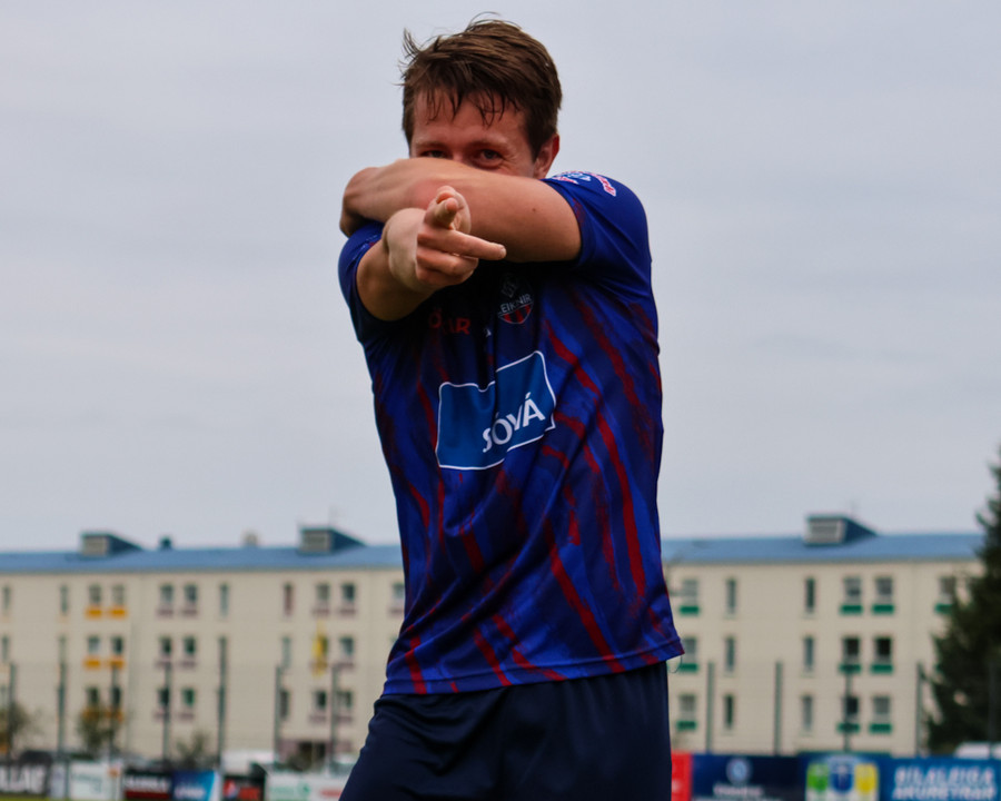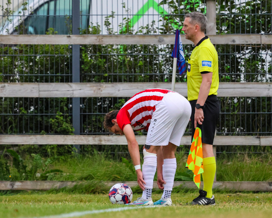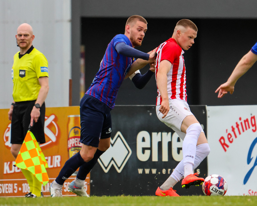 Eiríkur geysist upp hægri hliðina en leikurinn hefur meira og minna farið fram þar. Boltinn fer inn á teig þar sem Jörgen nær að stýra honum á Hinrik sem á misheppnað skot á markið. Það misheppnaða skot endar í sendingu á fjærstöngina þar sem Ágúst Karel mætir og potar honum inn.