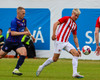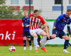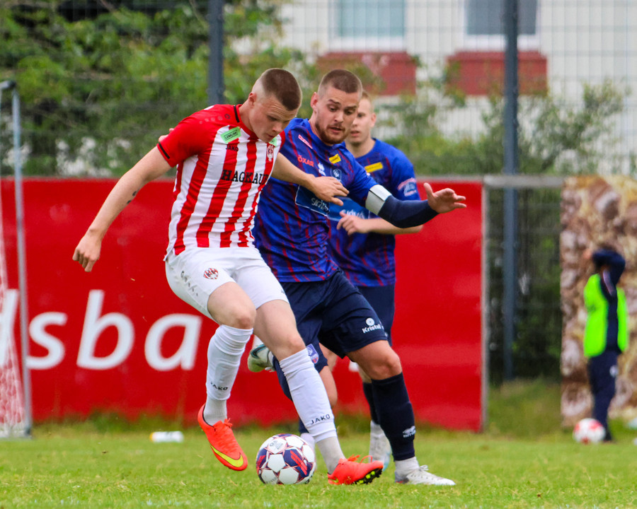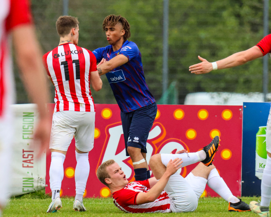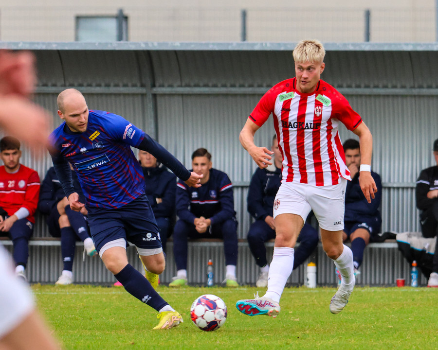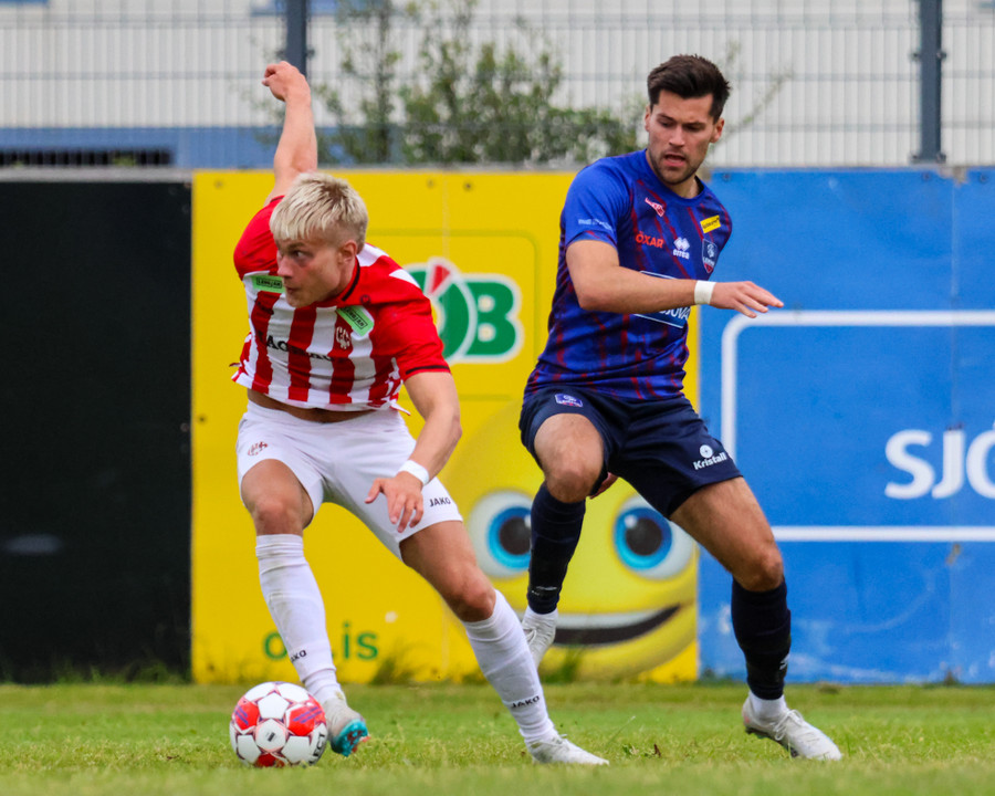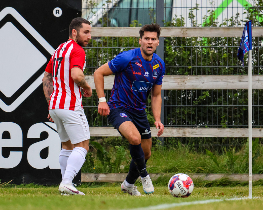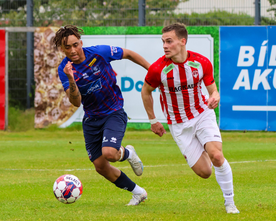 Arnór og Róbert Q spila vel á milli sín á hægri kantinum sem endar með fyrirgjöf frá Arnóri inn á Omar sem hittir ekki boltann nægilega vel og Sveinn Óli kemst í boltann.