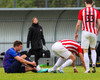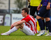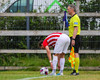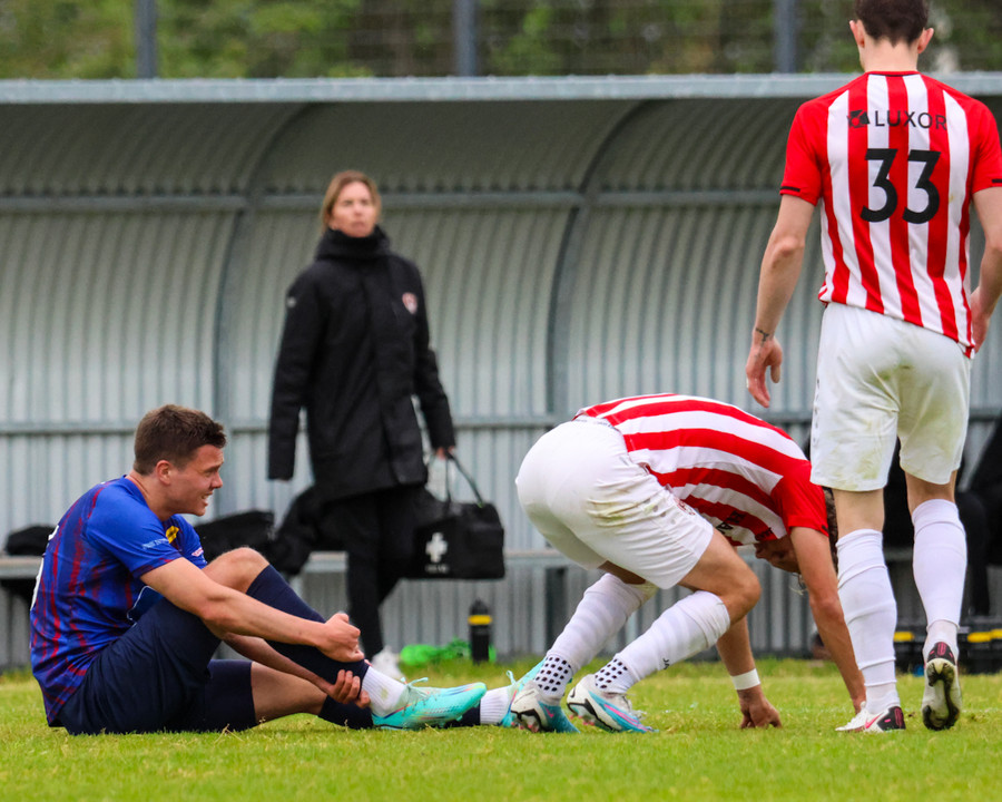 Brýtur á Ágústi þegar Þróttarar eru við það að komast í gegn. Ágúst liggur eftir niðri og þarf aðhlynningu.