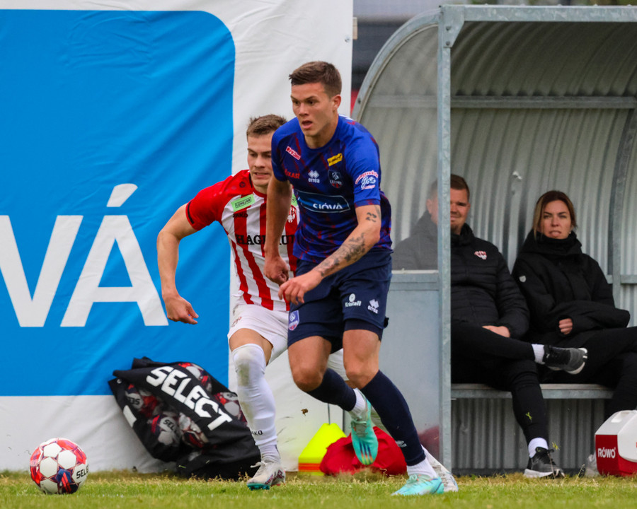 Daði með lélega sendingu til baka á Viktor sem Hinrik kemst fyrir. Hinrik er þá kominn einn í gegn á móti Viktori en Viktor ver glæsilega í horn.