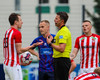 Árni Elvar, varamaður Leiknis, að brjóta mjög groddaralega á miðjum vellinum. Hann fær ekki spjald en Þróttarar eru brjálaðir