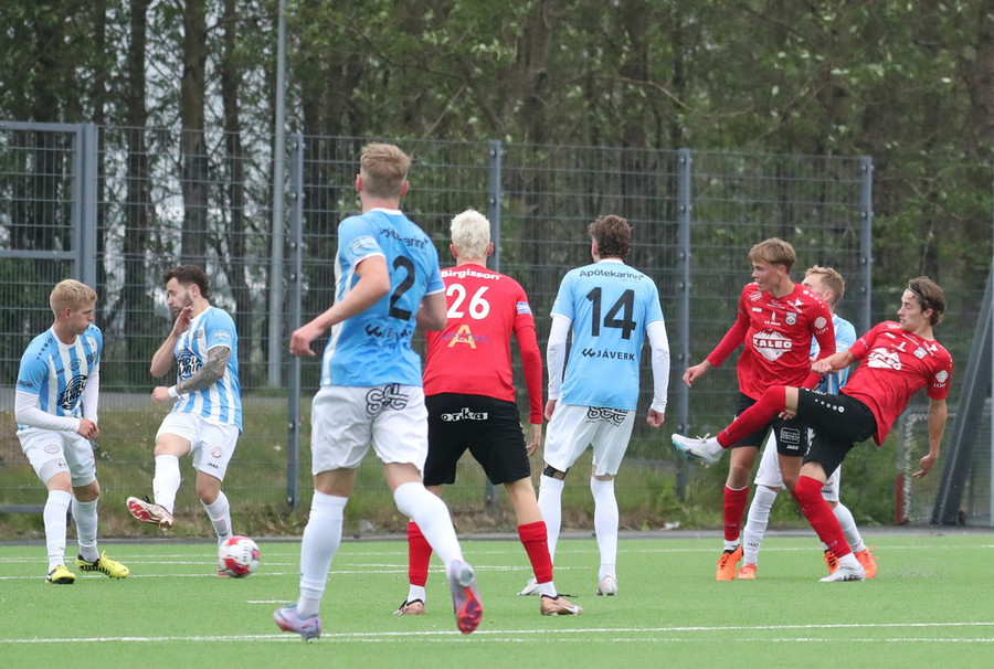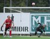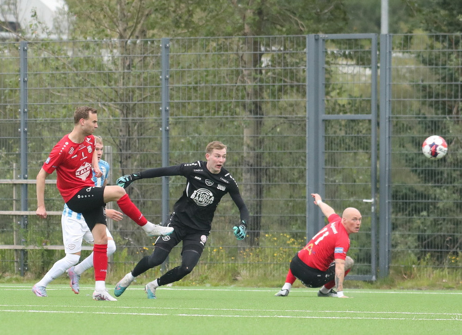 Hjörvar á góða fyrirgjöf í teiginn beint á Hrafn sem tekur viðstöðulaust skot í hornið.
