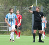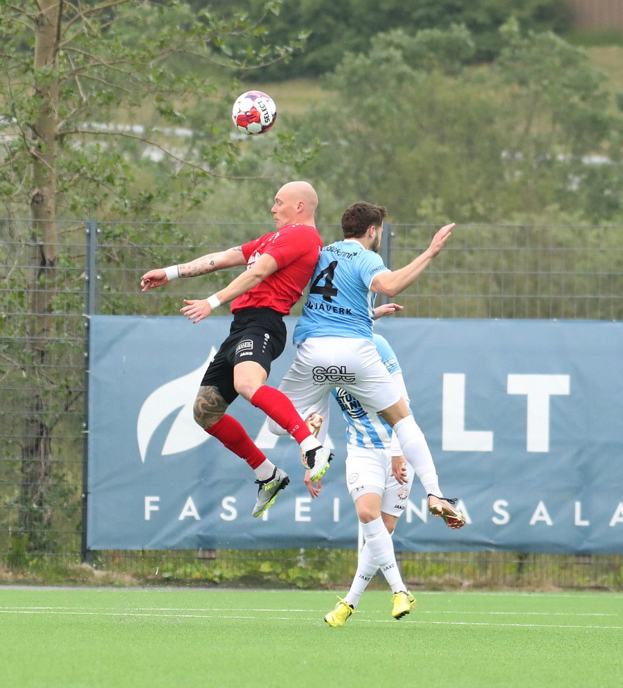 Aron fer ansi harkalega í Hrafn og fær verðskuldað gult spjald að launum.