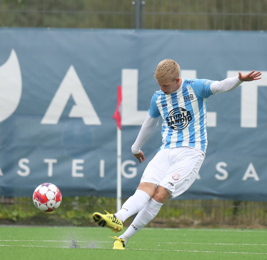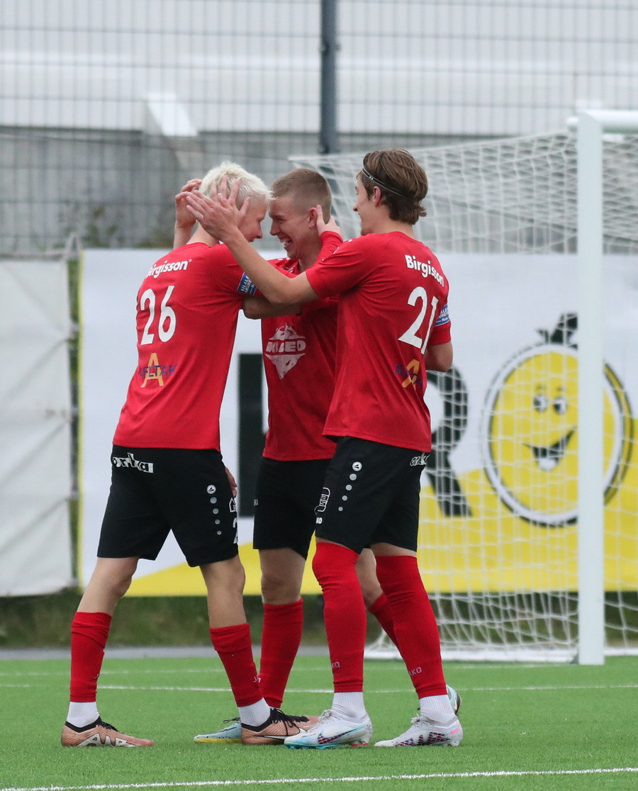 Oliver Jensen á frábæran sprett upp vinstri kantinn og sker svo boltann út í teiginn á Elmar sem setur boltann í netið!