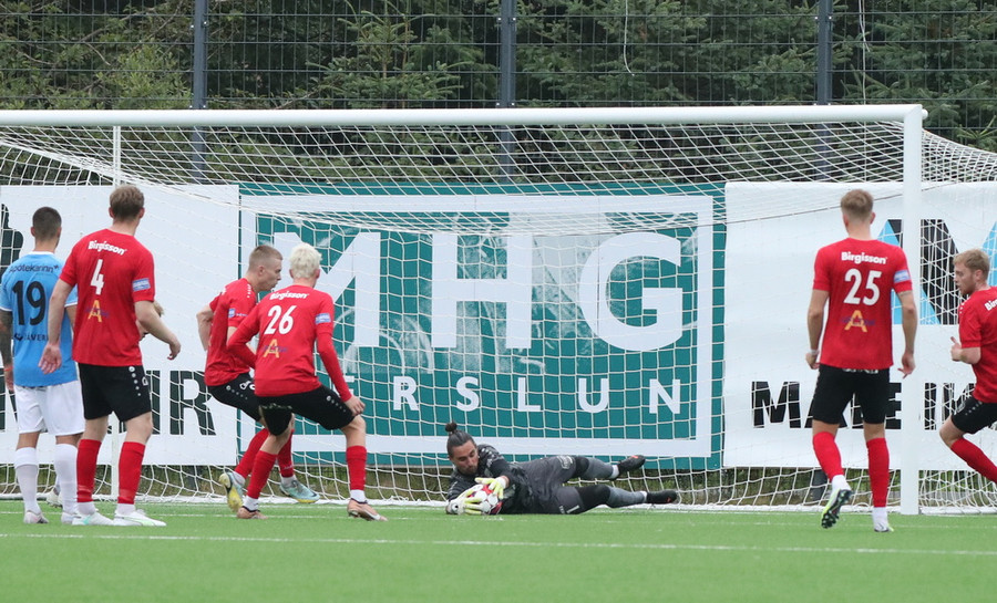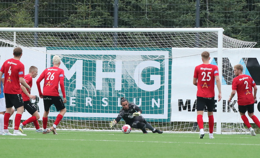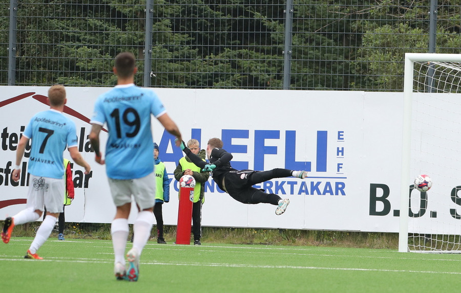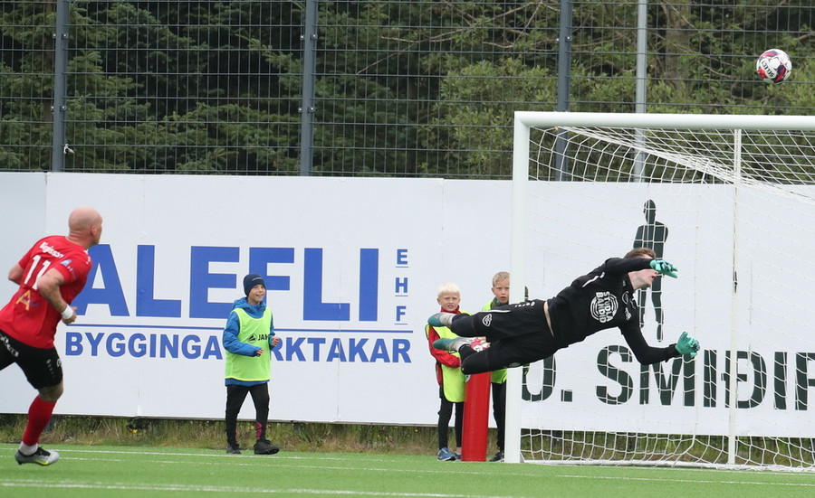 Oliver Jensen tekur frábært skot fyrir utan teig en Stefán Þór á sturlaða vörslu!
