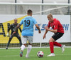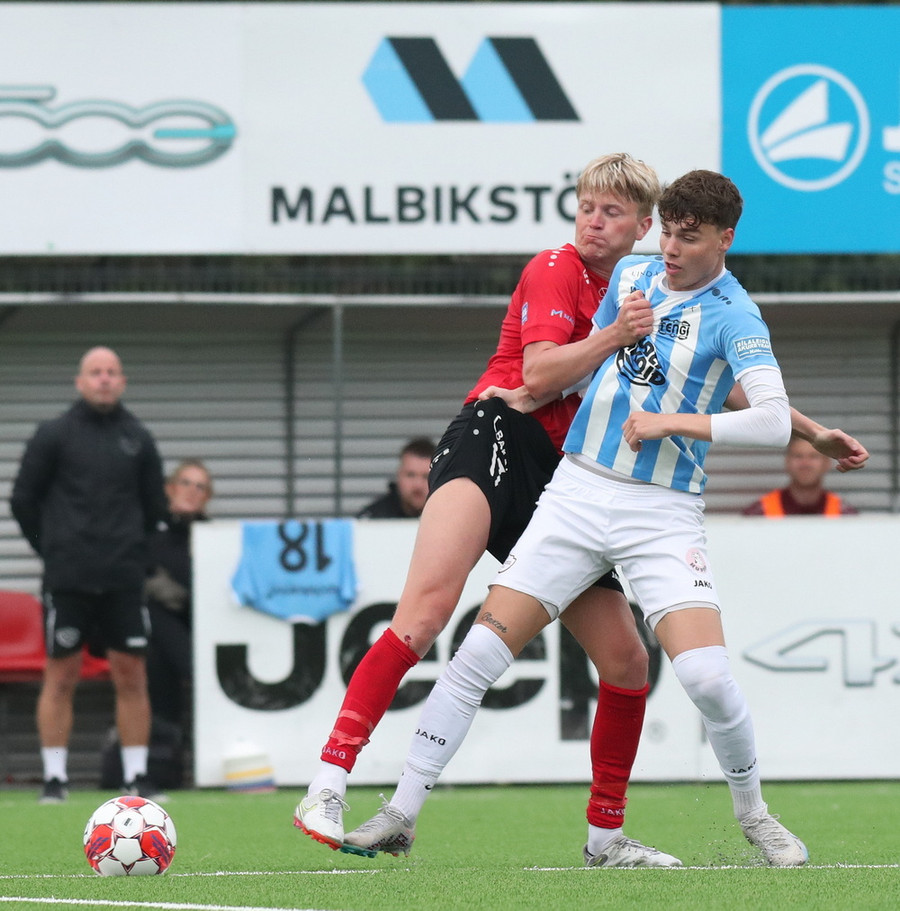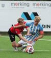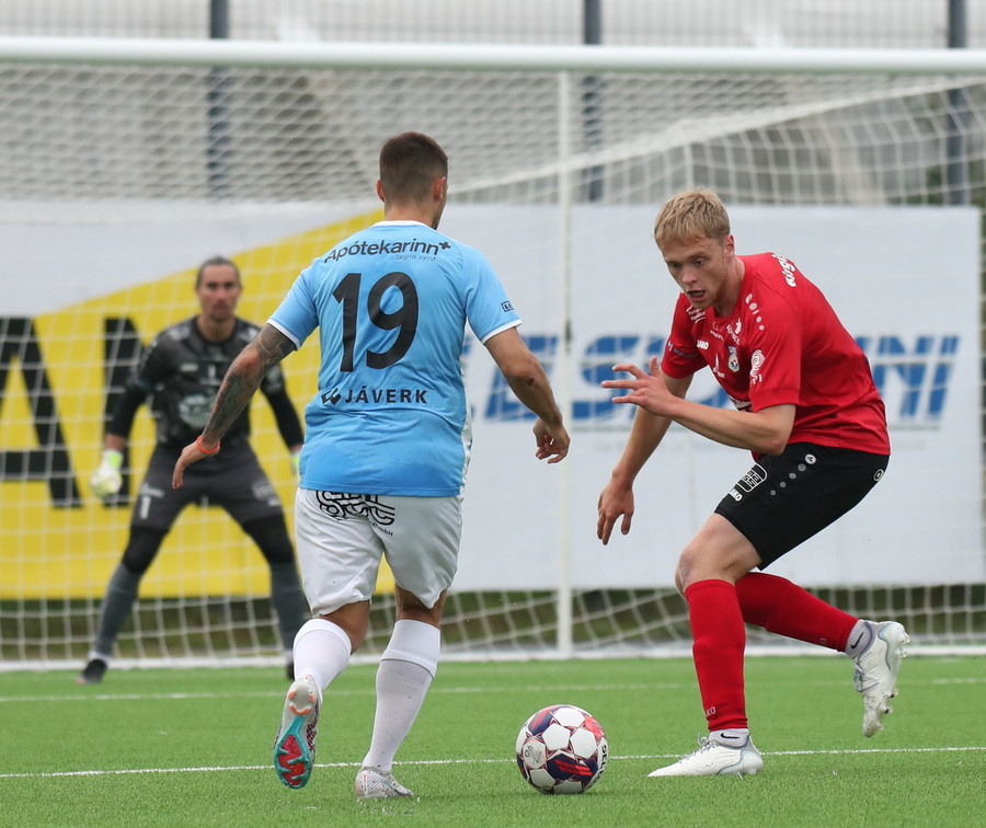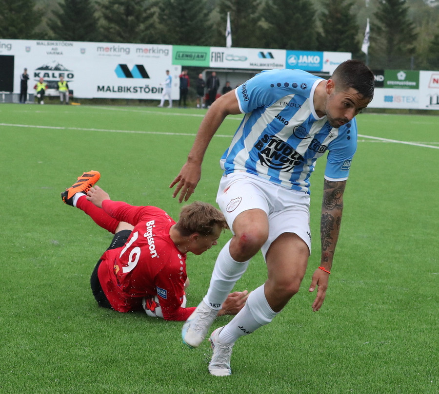 Gary fær boltann í gegn og klárar vel en Bergur Daði er búinn að lyfta flagginu.