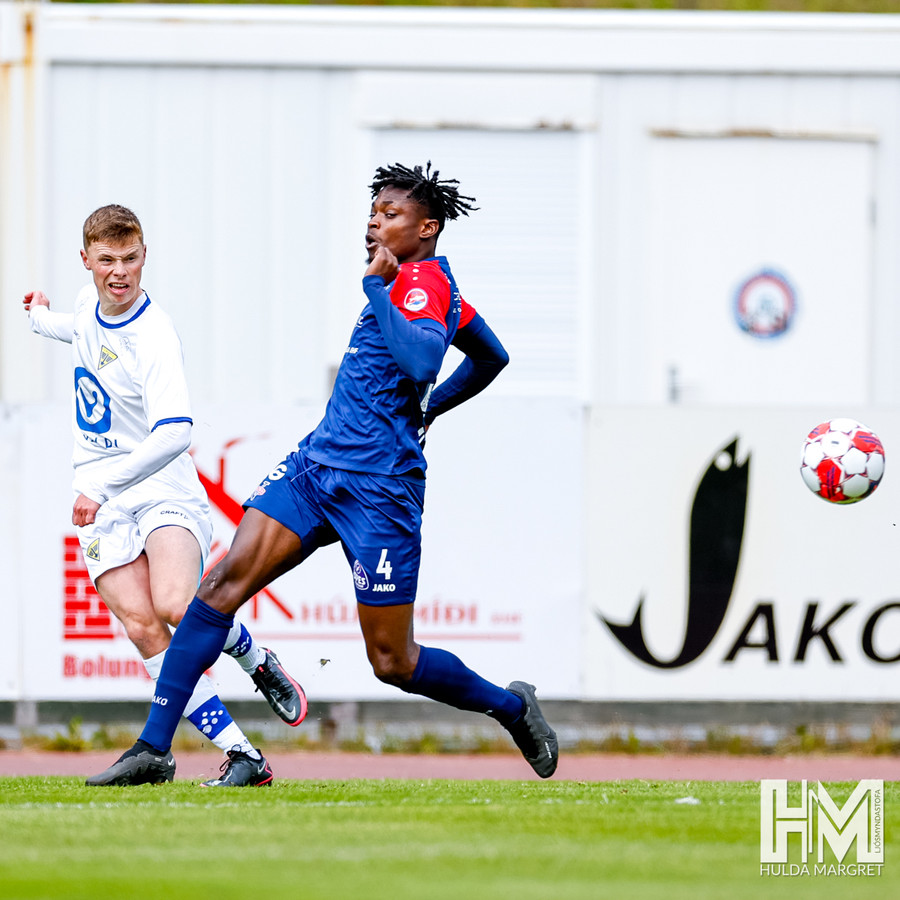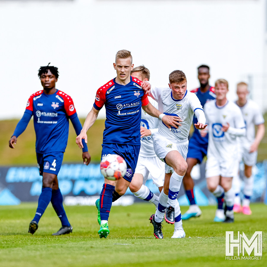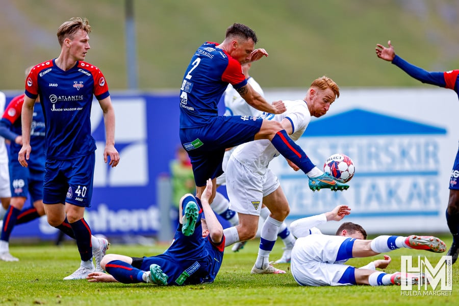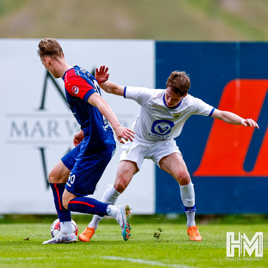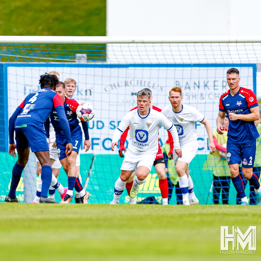 Benedikt vinnur aukaspyrnu í fyrirgjafarstöðu.