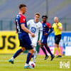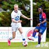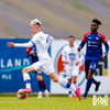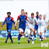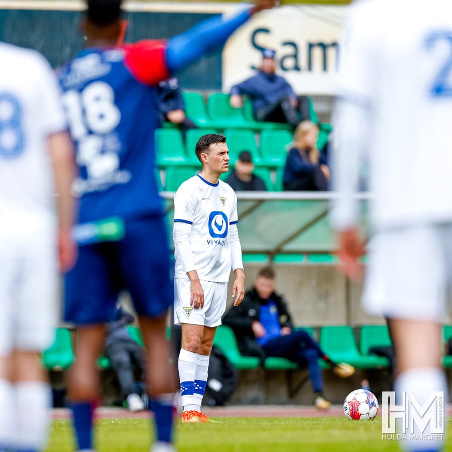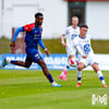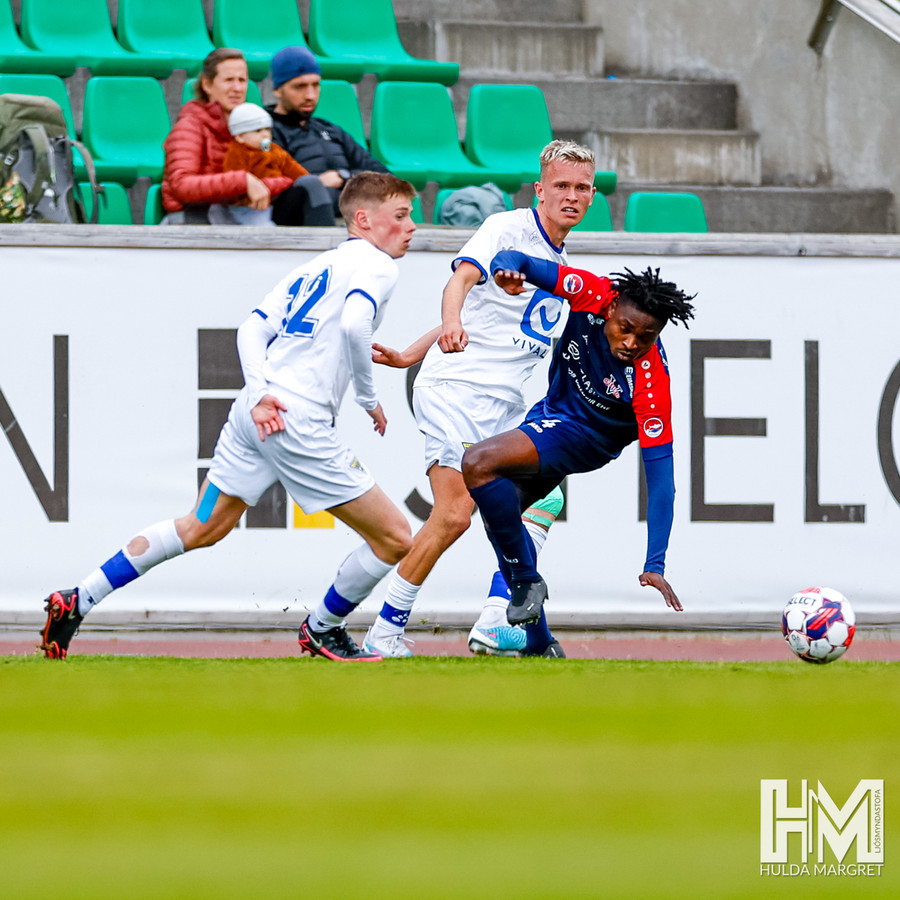 Silas fer illa með varnarmann Gróttu og finnur Balde inn í teignum sem er afar lengi að þessu og ákveður að skjóta ekki og sóknin rennur út í sandinn.