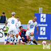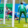 Rafal með arfaslaka spyrnu og beint á Benedikt sem á vinstrifótarskot í varnarmann og horn.