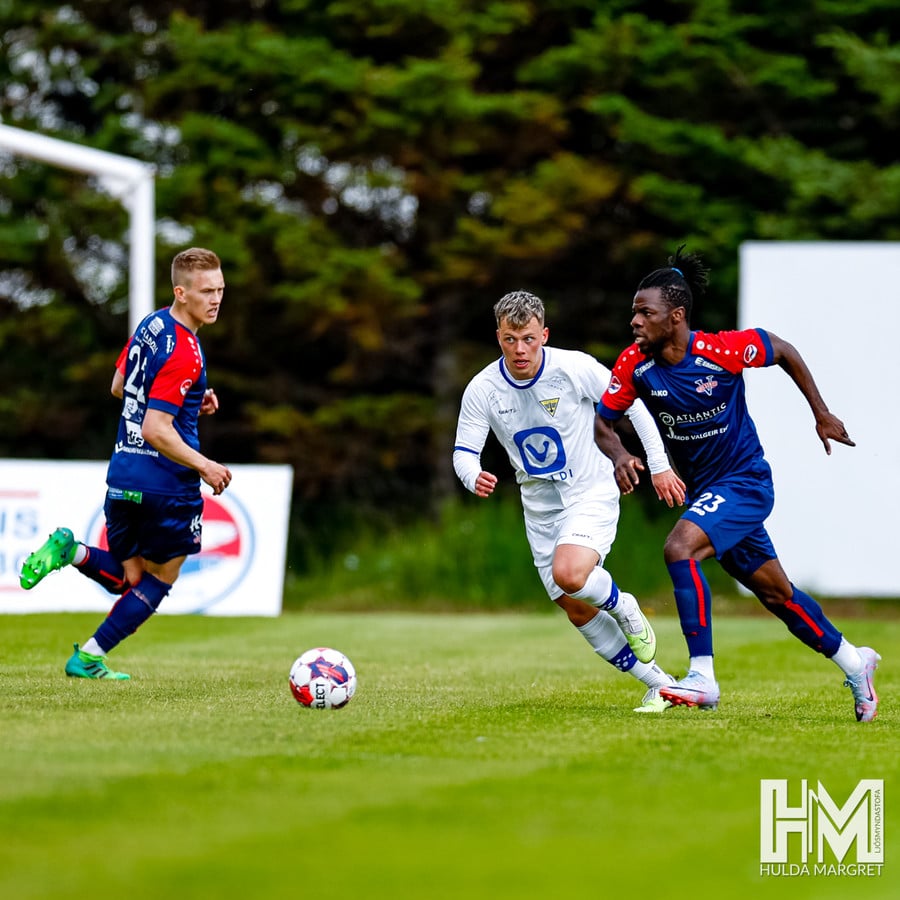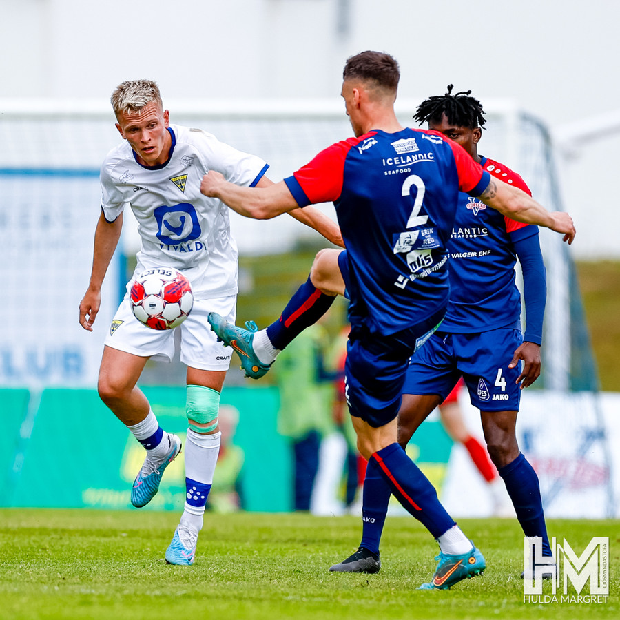 Vestri komast hér 3 á 2 og Benedikt flaggaður rangstæður. Afar tæpt svo ekki sé meira sagt.