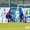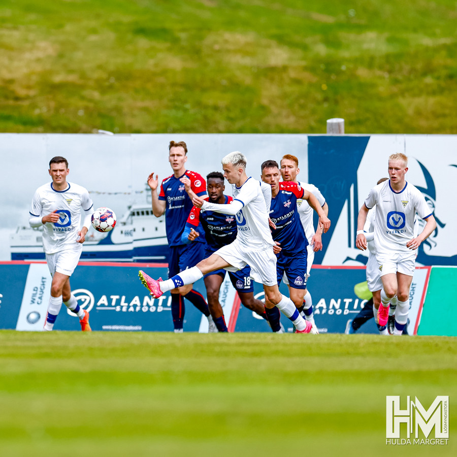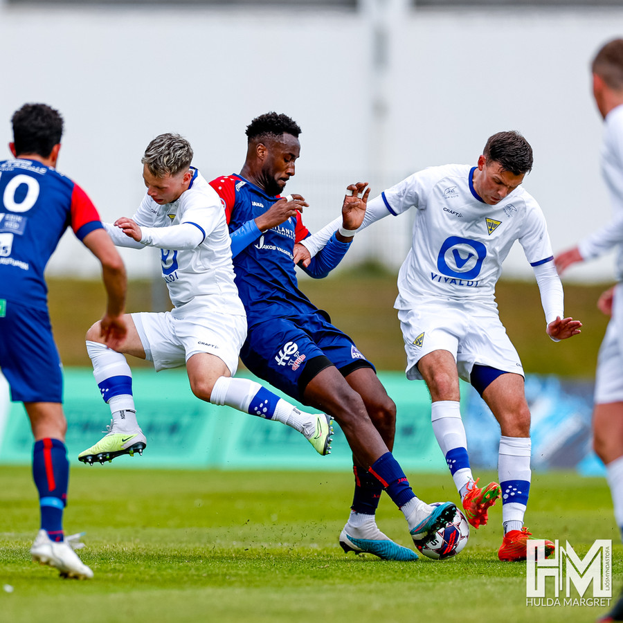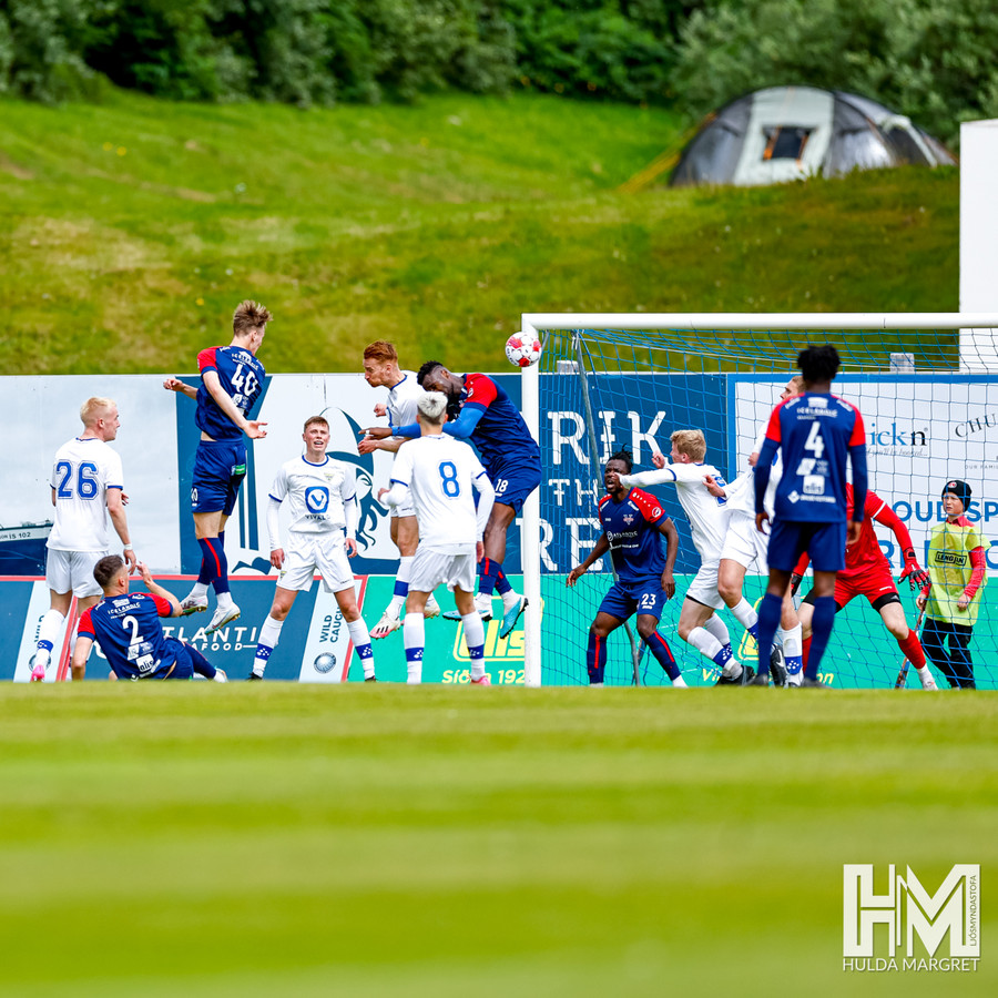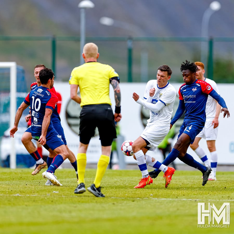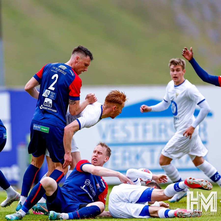 Hornahrynunni líkur er Rafael kýlir boltann frá og Vestri nær völdum á boltanum.