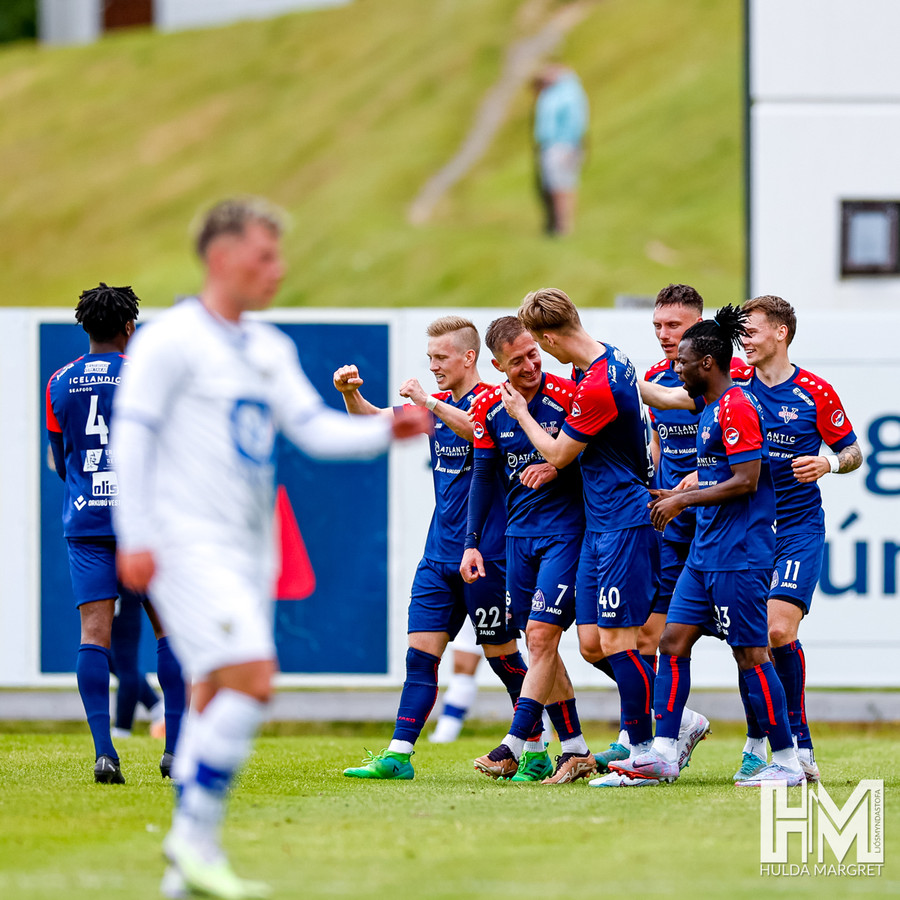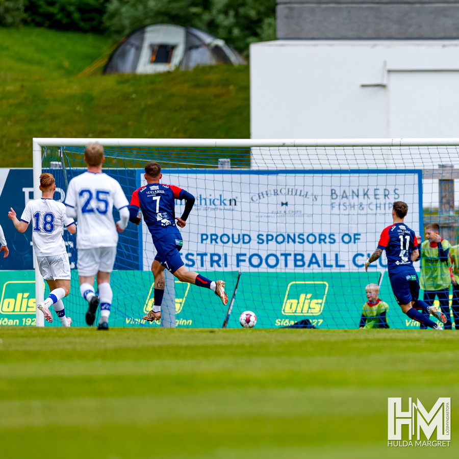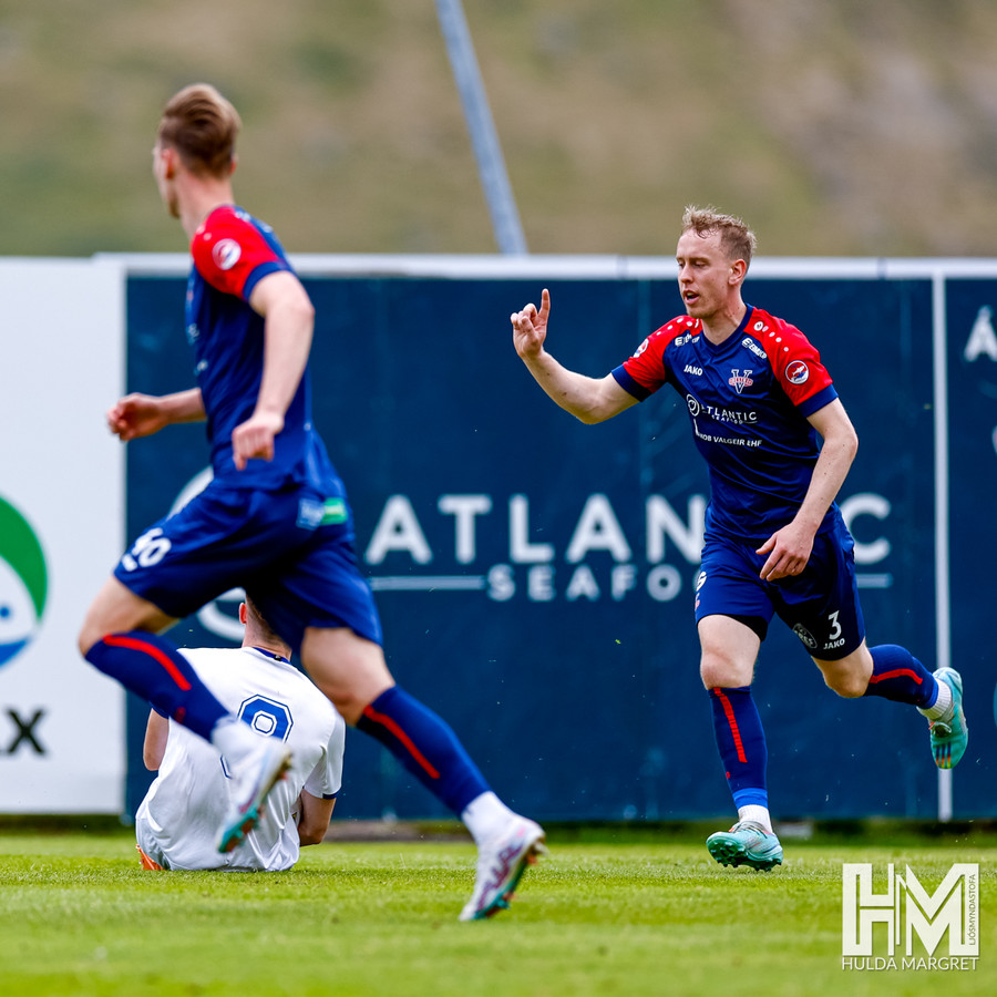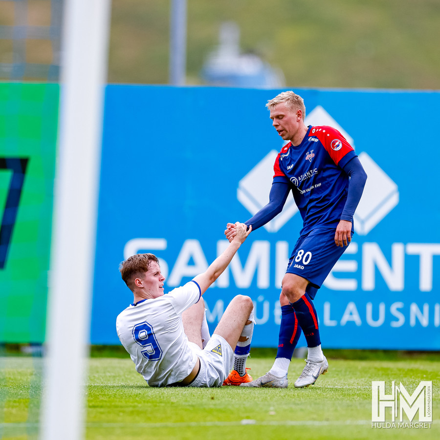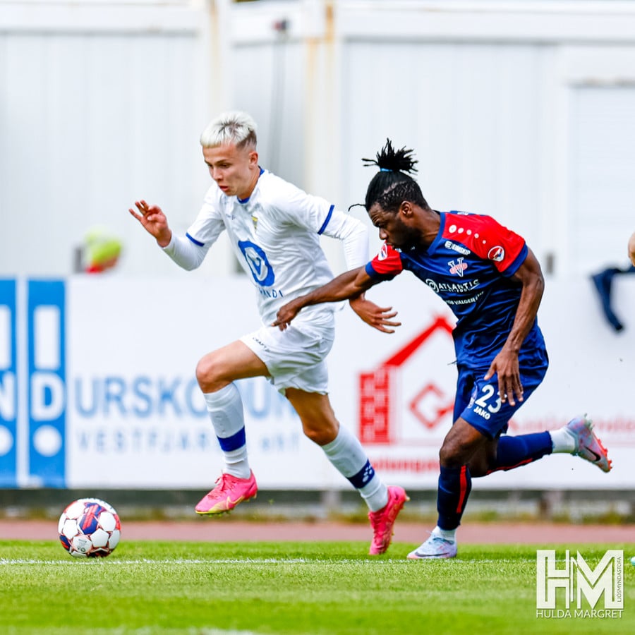 Axel fellur í teig Vestra og vill fá víti. Dómarinn flautar ei og löng sending Gustavs í gegn og Tufa tók afar vel á móti boltanum og afgreiddi vel í hornið fjær með vinstri.