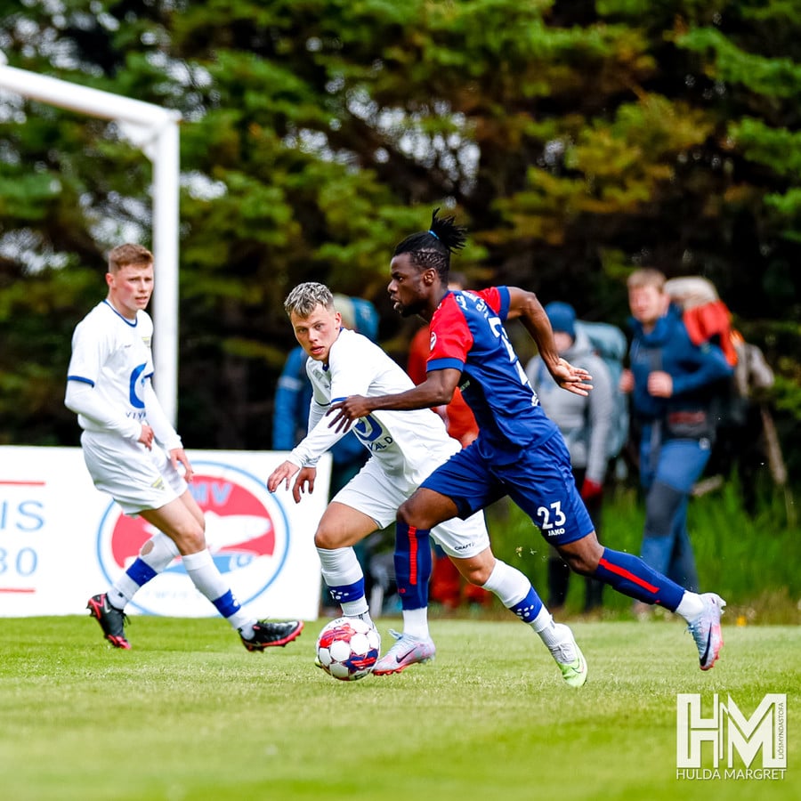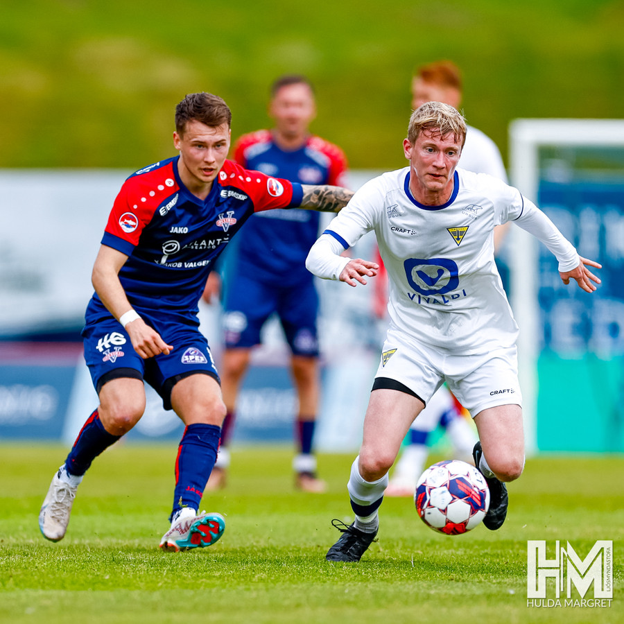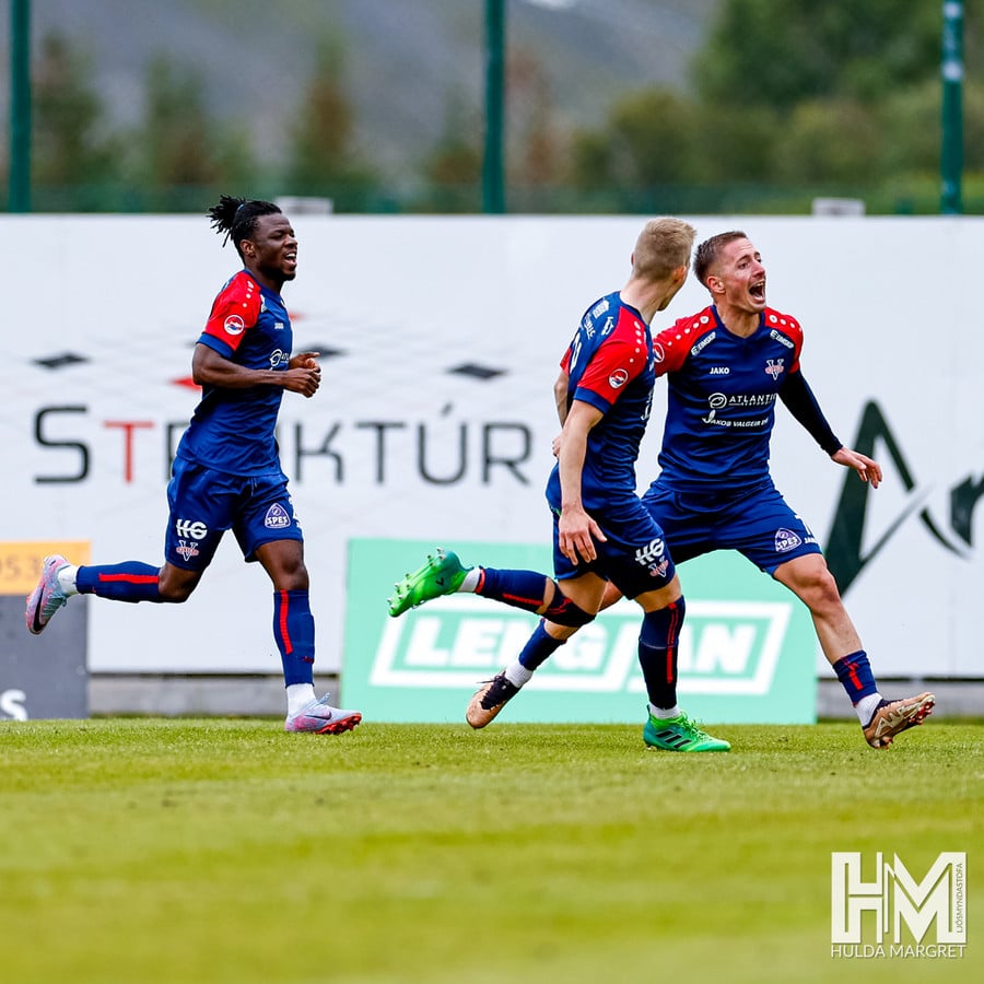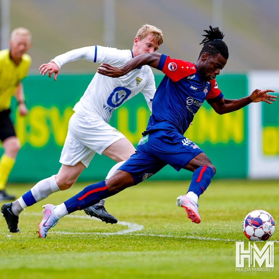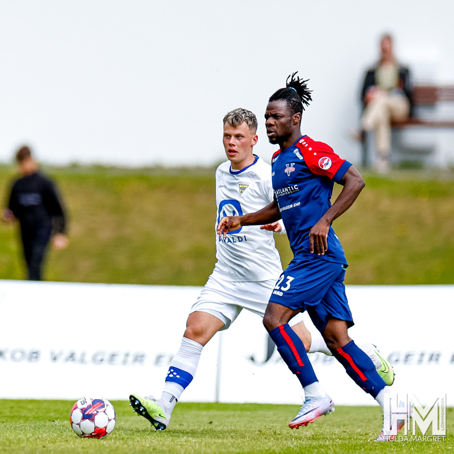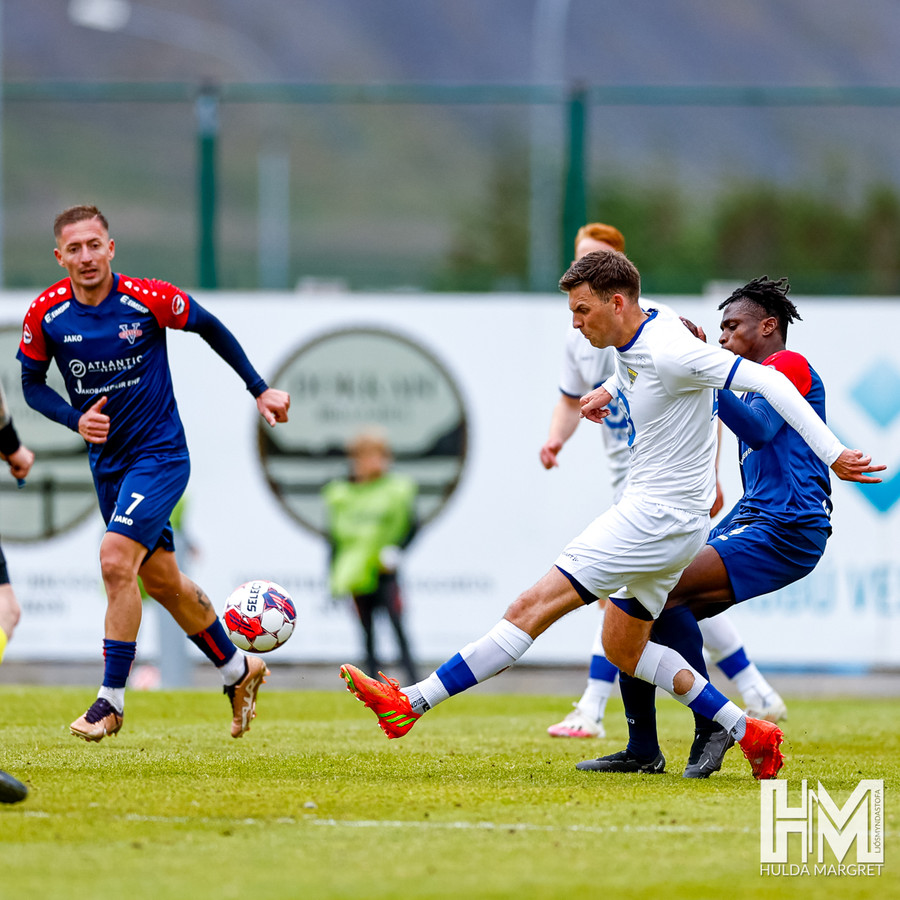 Axel fellur í teig Vestra og vill fá víti. Dómarinn flautar ei og löng sending Gustavs í gegn og Tufa tók afar vel á móti boltanum og afgreiddi vel í hornið fjær með vinstri.