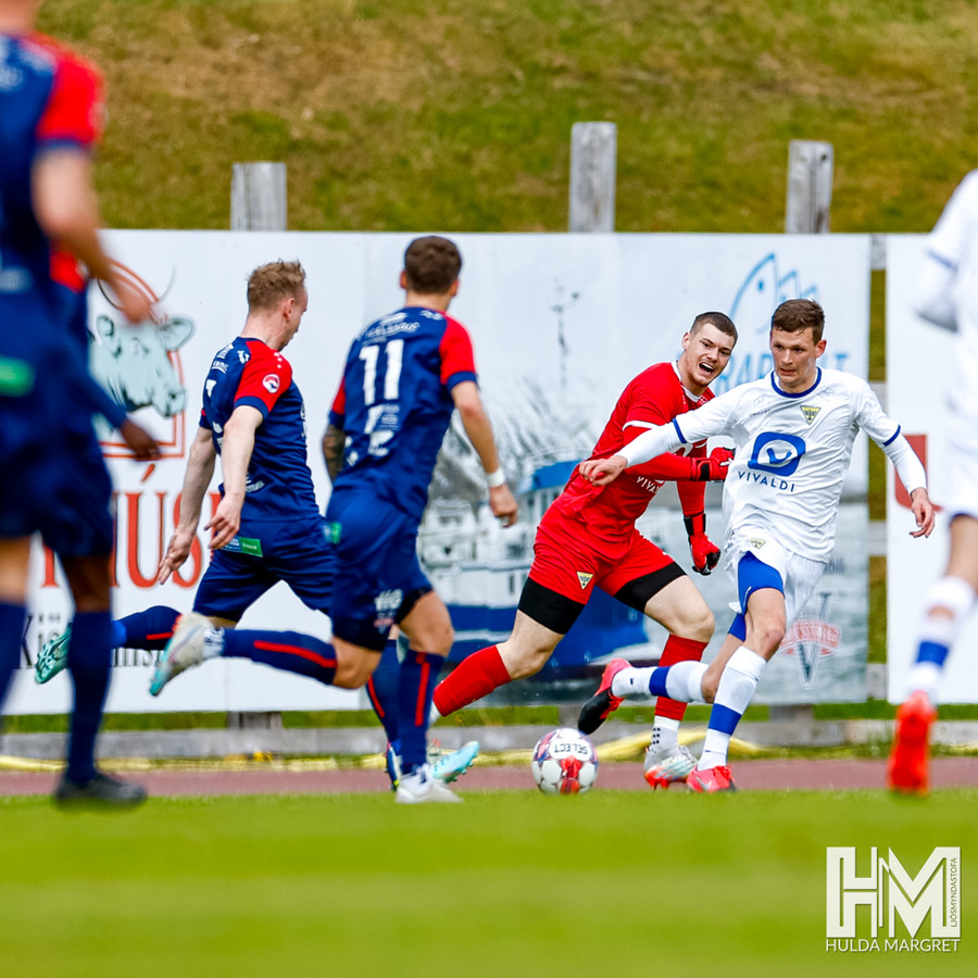 Nacho nálægt boltanum en Rafal kýlir frá. Sóknin endar með lúmsku skoti Elvars framhjá.