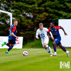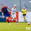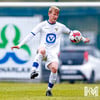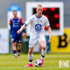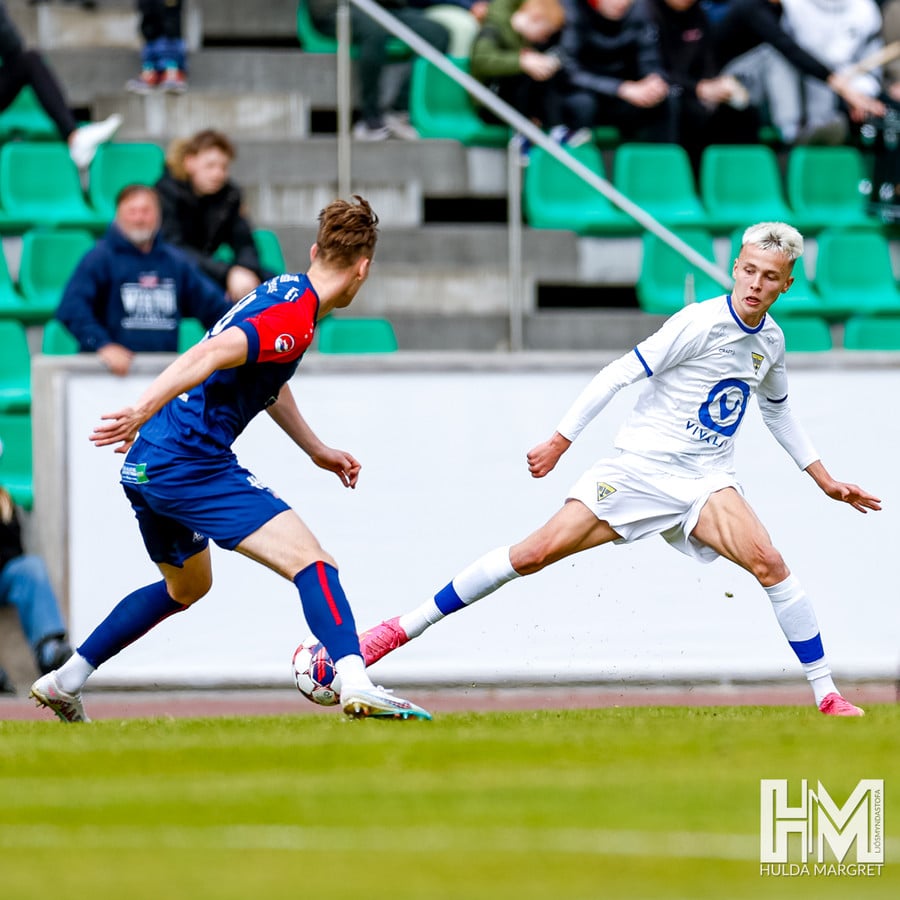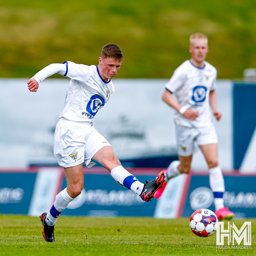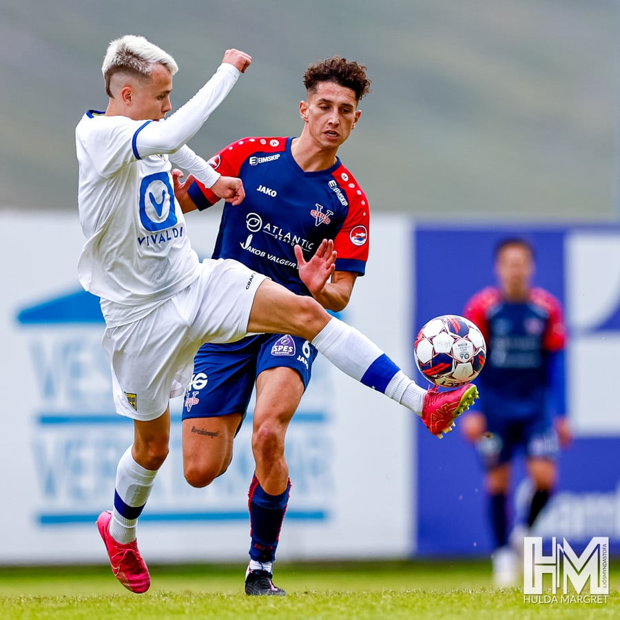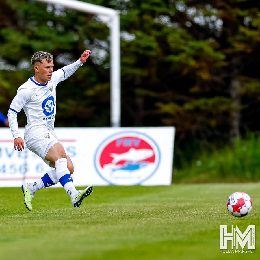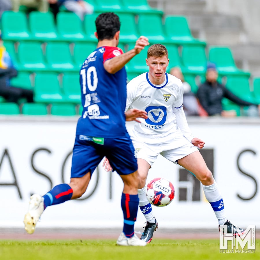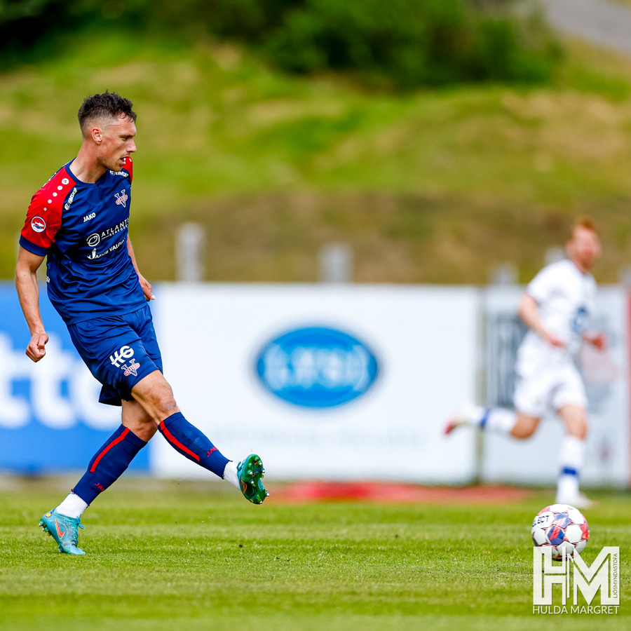 Mikkel með flottan sprett frá vinstri vængnum yfir á miðjan völlinn og á skot rétt yfir.