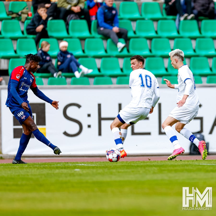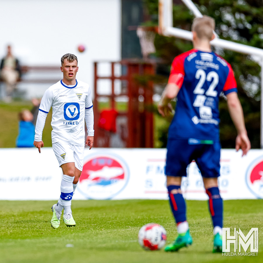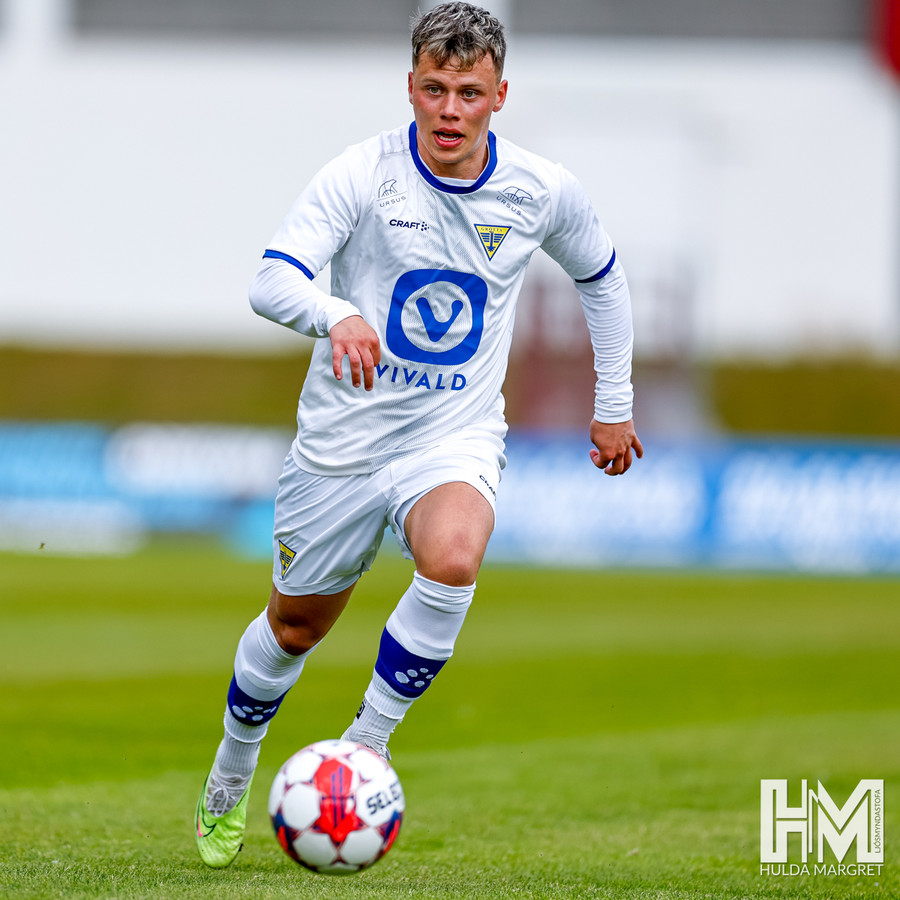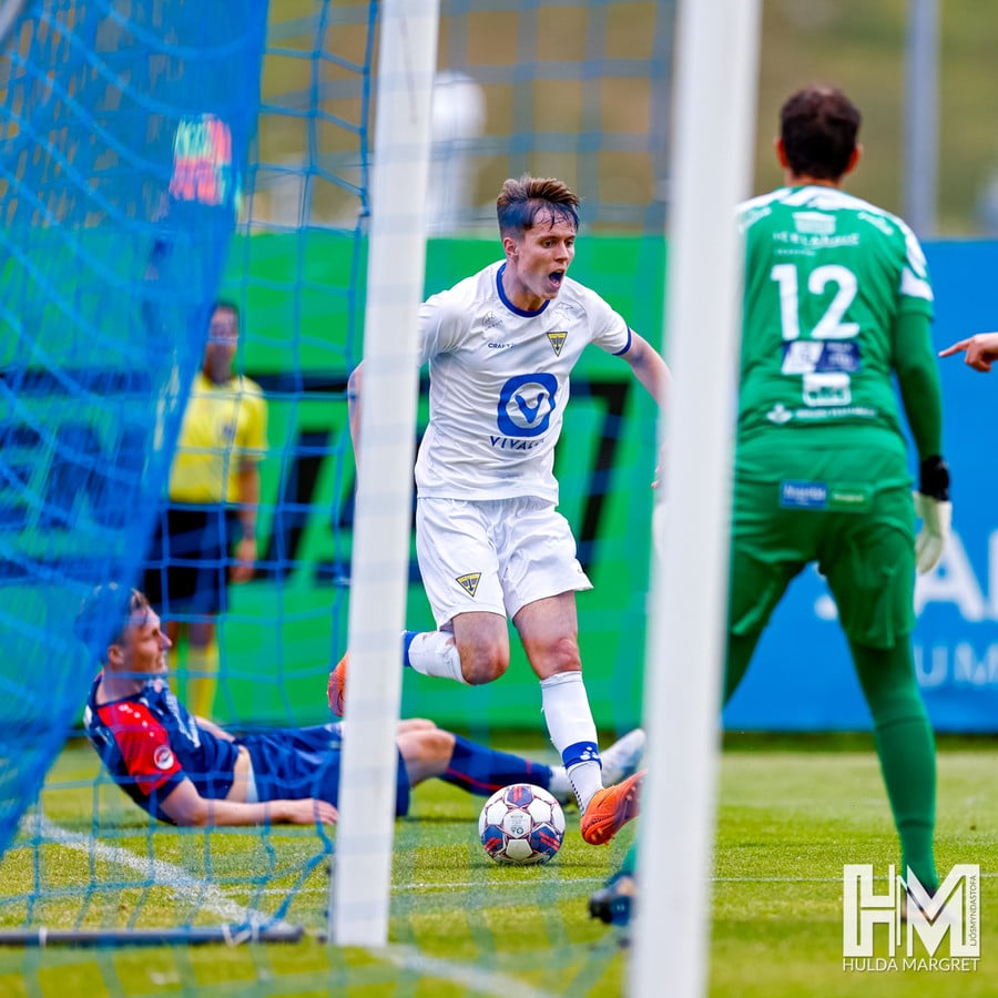 Guðmundur Páll sendur í gegn með frábærri sendingu Mikkels en setur skotið rétt framhjá!