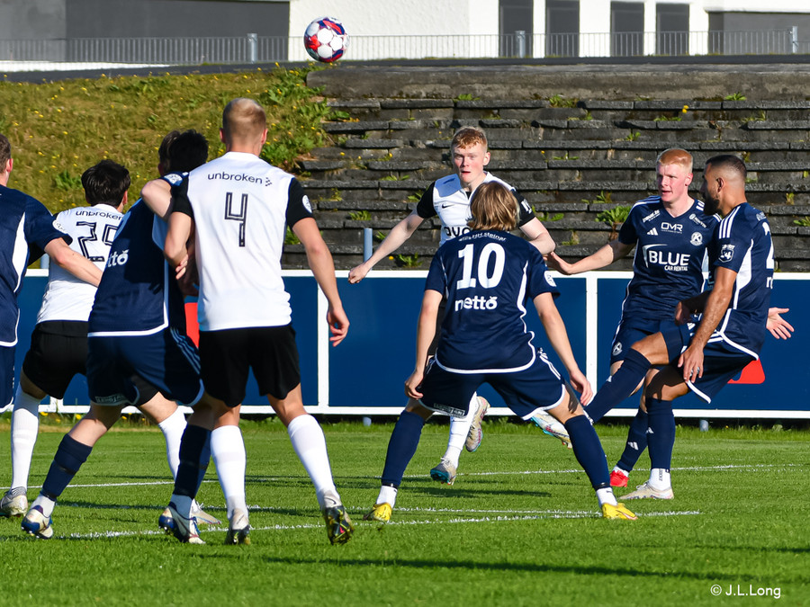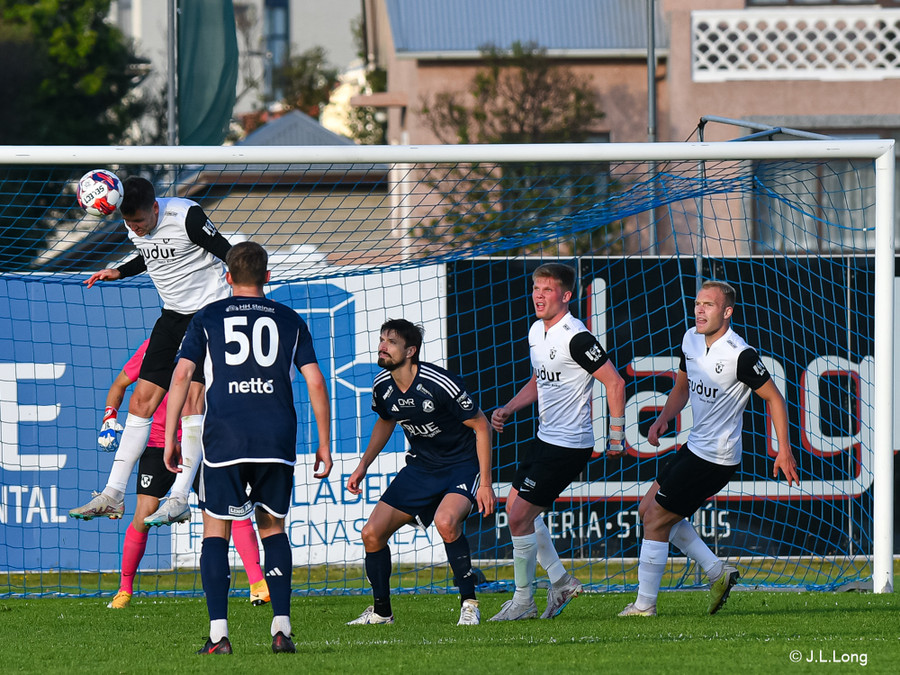 Langur bolti fram, Frans eltir og uppsker hornspyrnu.