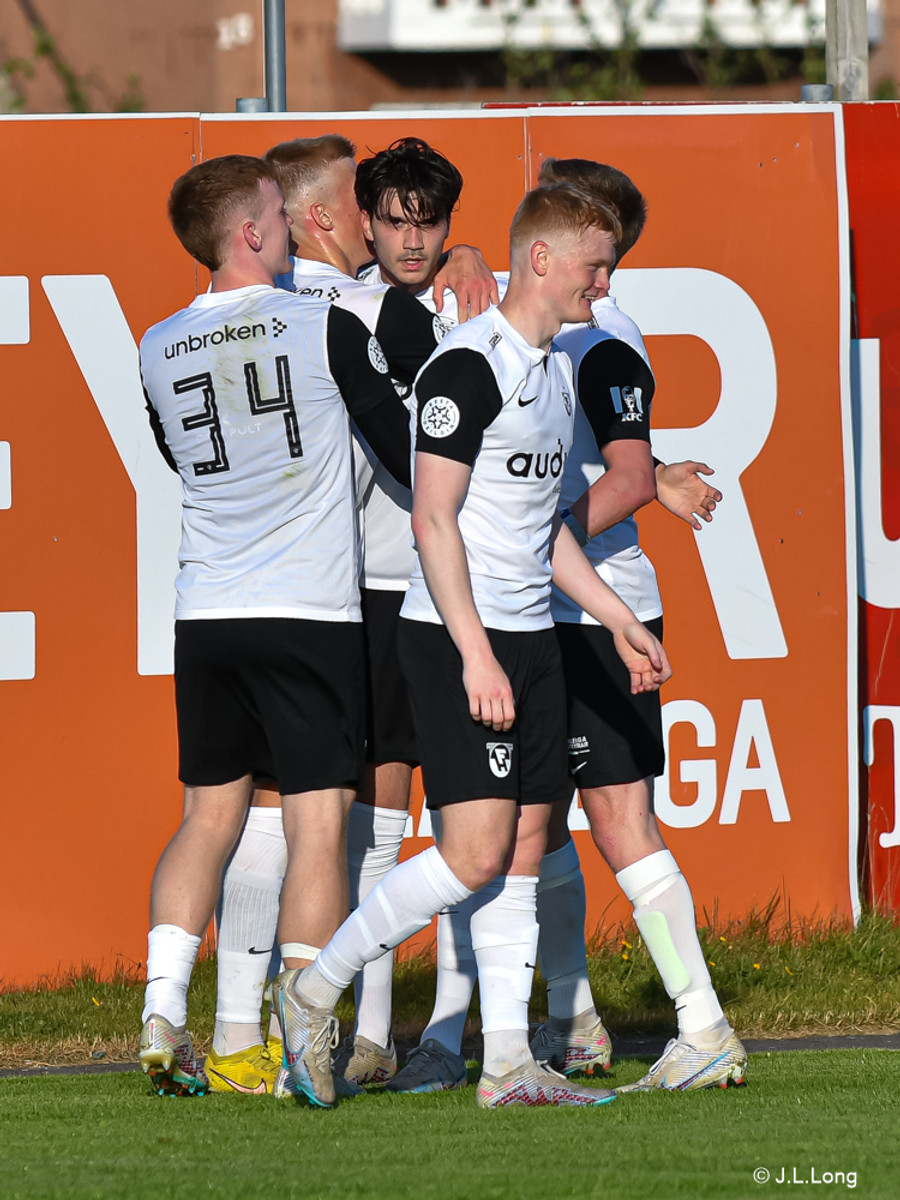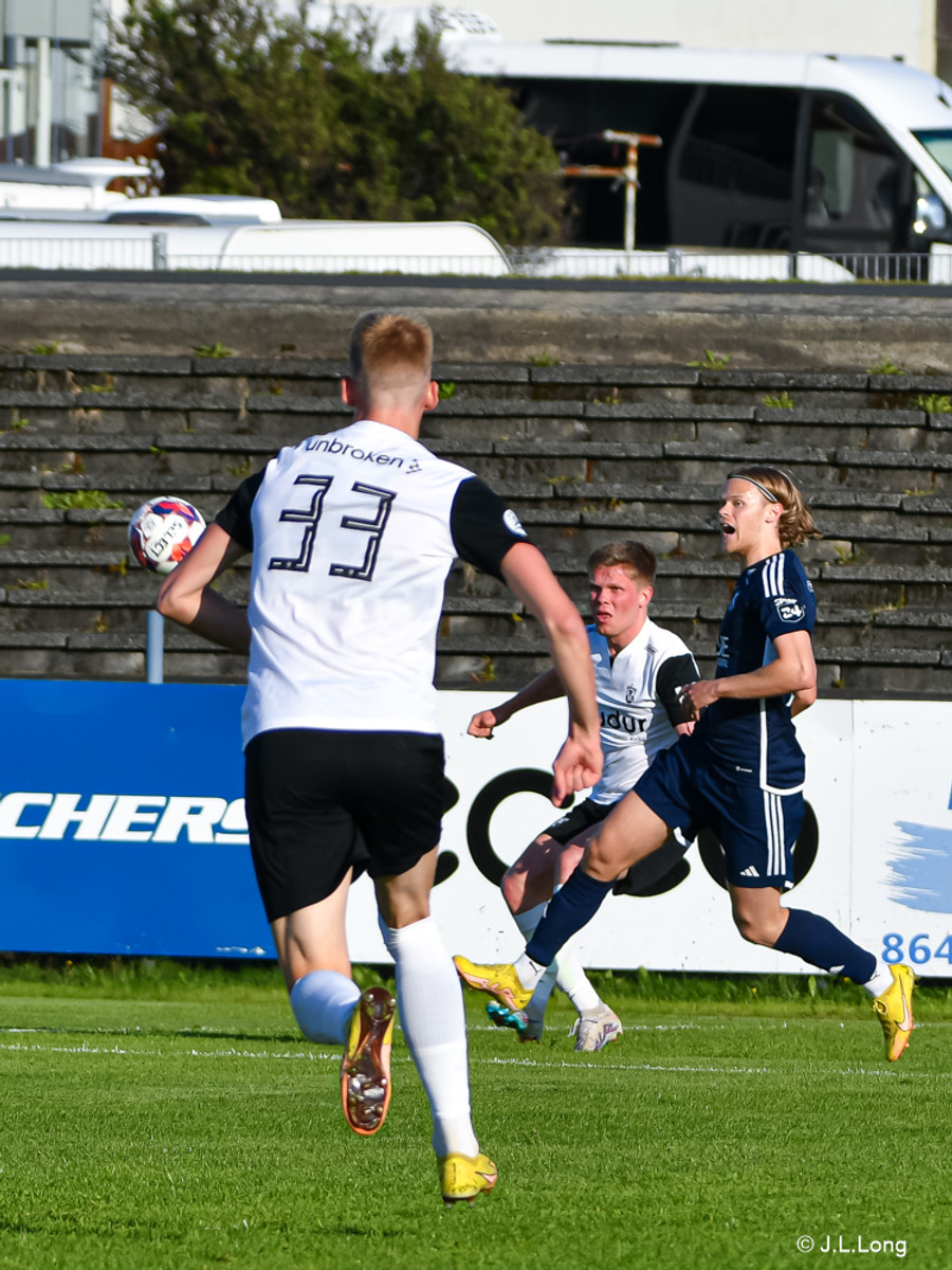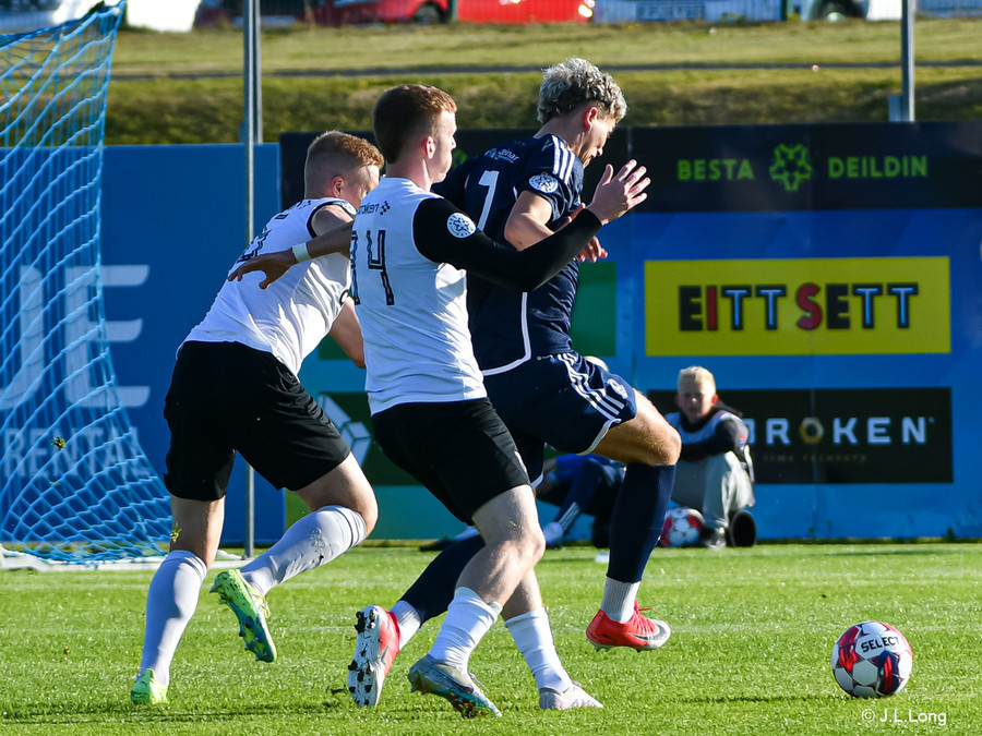 Boltinn settur innfyrir á Vuk sem keyrir inn á teiginn og finnur Úlf í hlaupinu við vítapunkt sem að á ekki í teljandi vandræðum með að skora af stuttu færi.