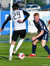 Vuk með öflugan sprett upp vinstri vænginn og kemst inn á teiginn, fyrirgjöf/skot hans þó heldur mislukkað og endar í hliðarnetinu.