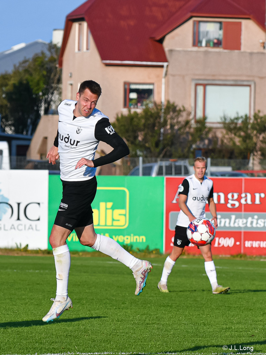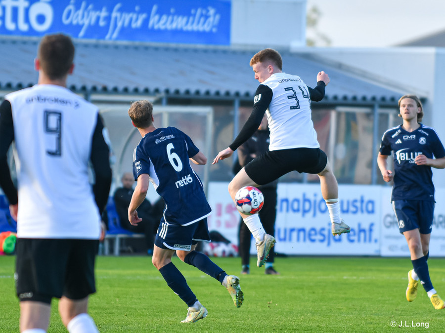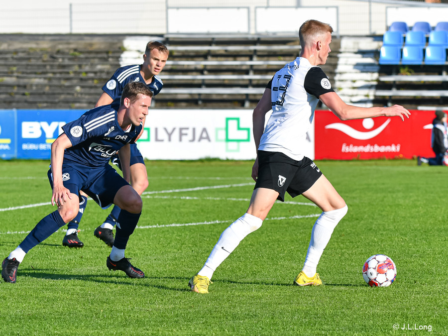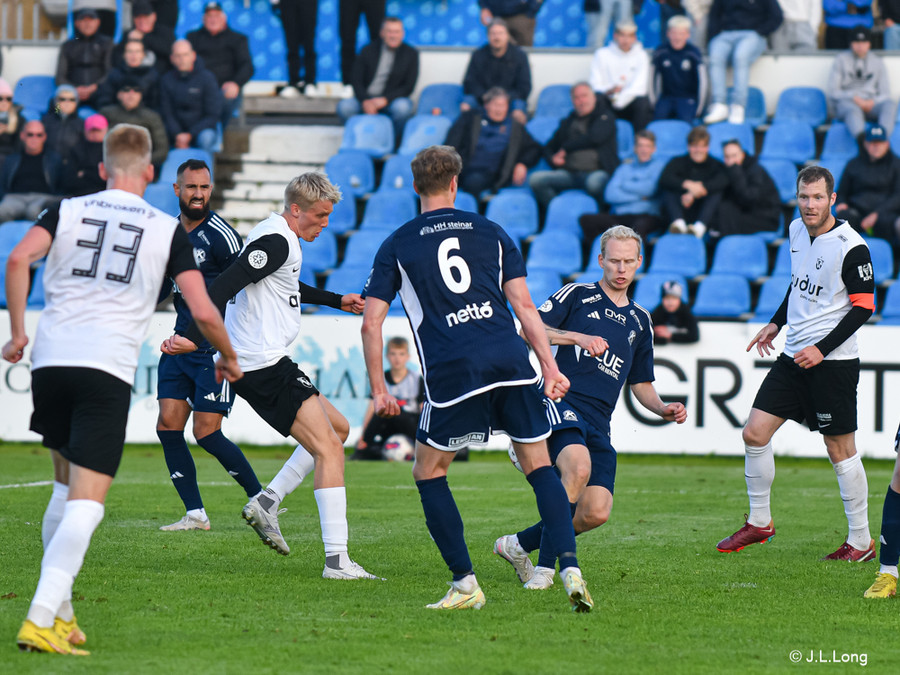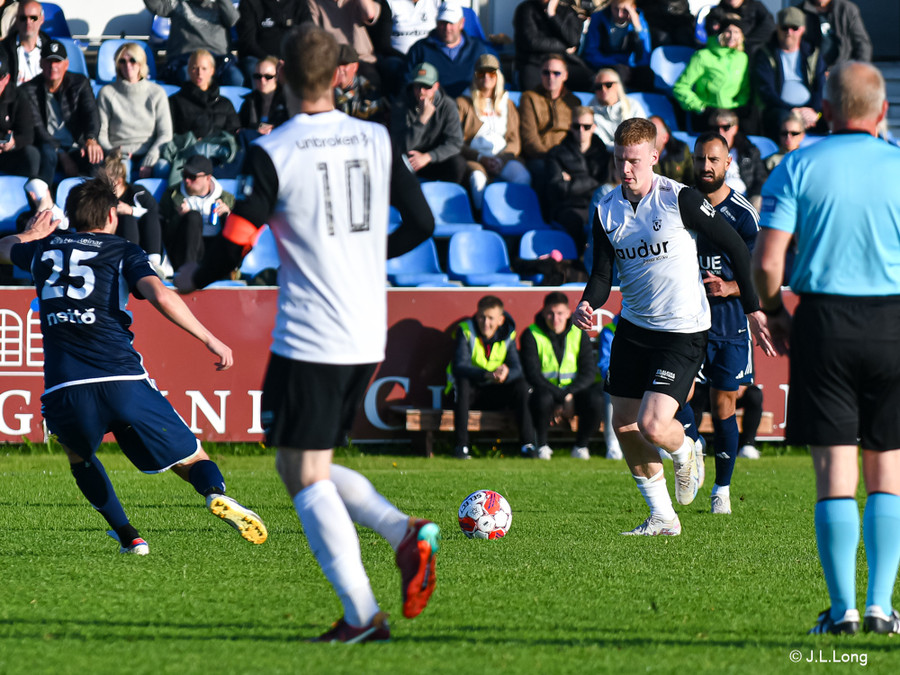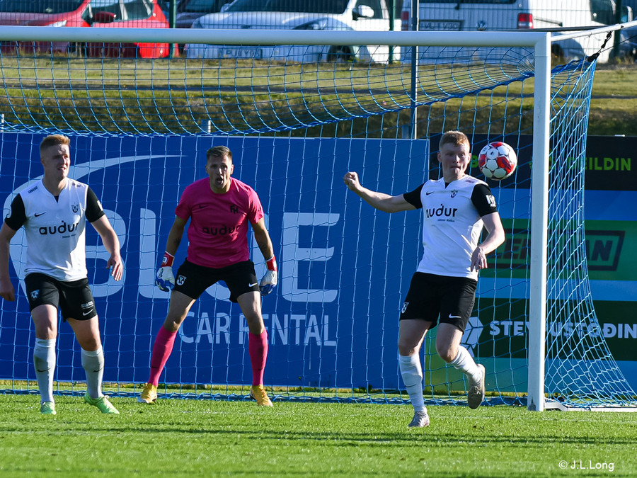 Arnór Borg með skot í varnarmann eftir hornið en hemamenn koma boltanum ekki frá sem endar fyrir fótum Björns Daníels sem skorar úr teignum.