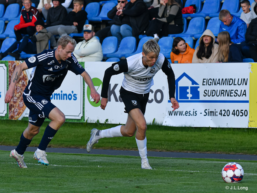 Vuk enn að hrella Keflavík, fer vel með boltann úti til vinstri og finnur Loga við vítateiginn sem á skotið en boltinn vel yfir.