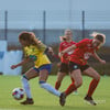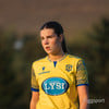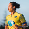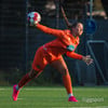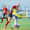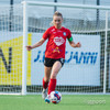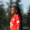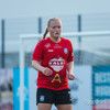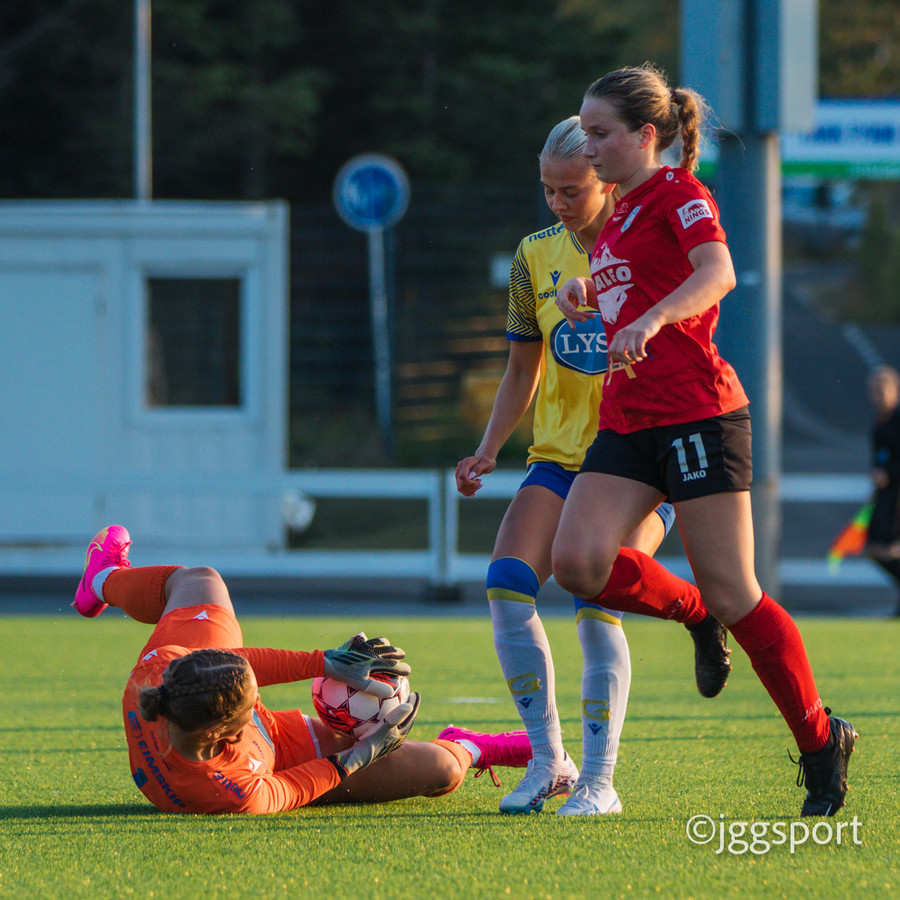 Jasmine sækir hratt upp völlinn, nær að koma skoti á markið en það fer beint í fangið á Evu.