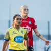 Jasmine sendir systur sína Jada í gegn en það er flaggað. Þetta var mjög tæp rangstaða!