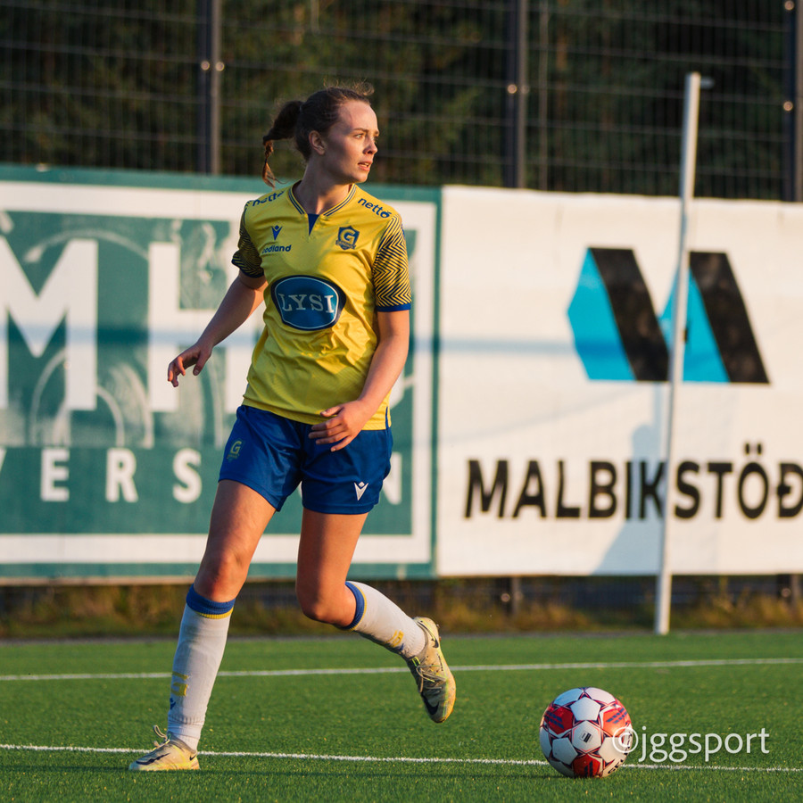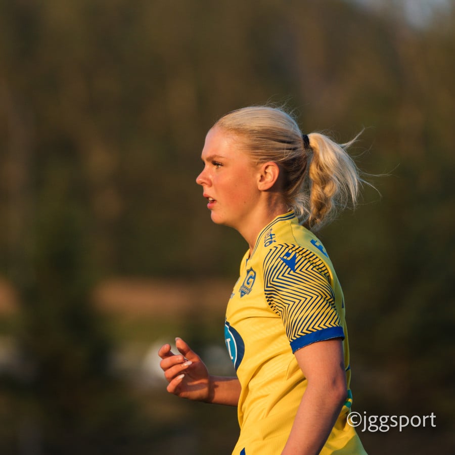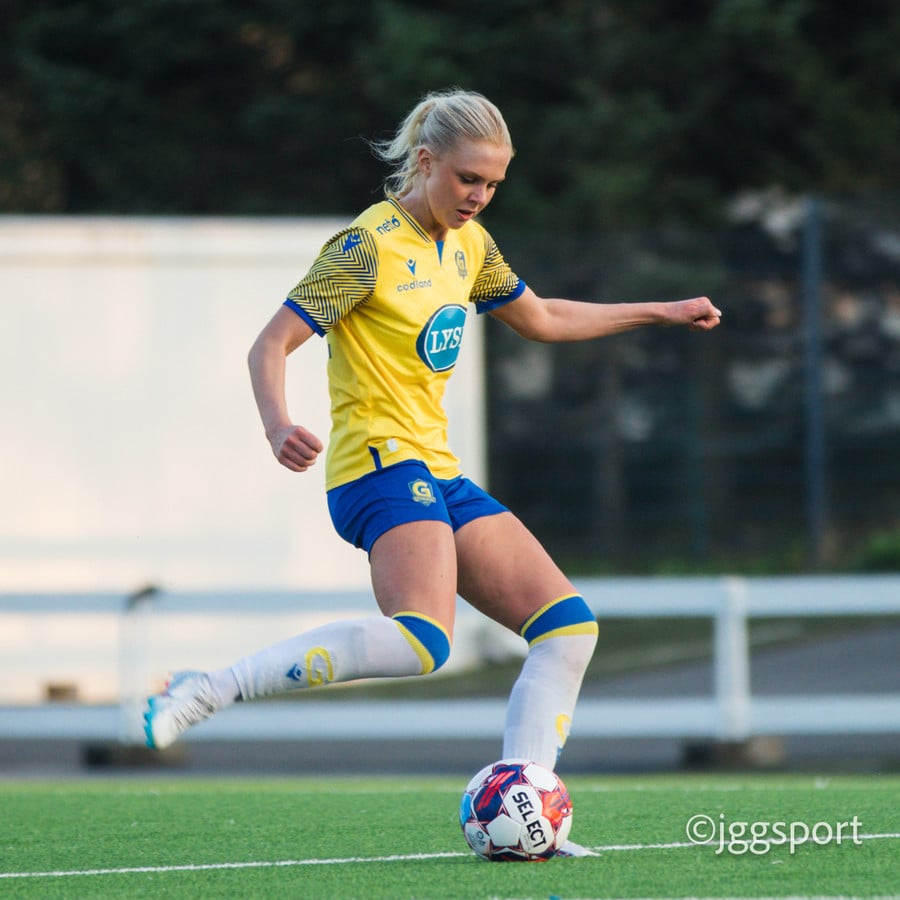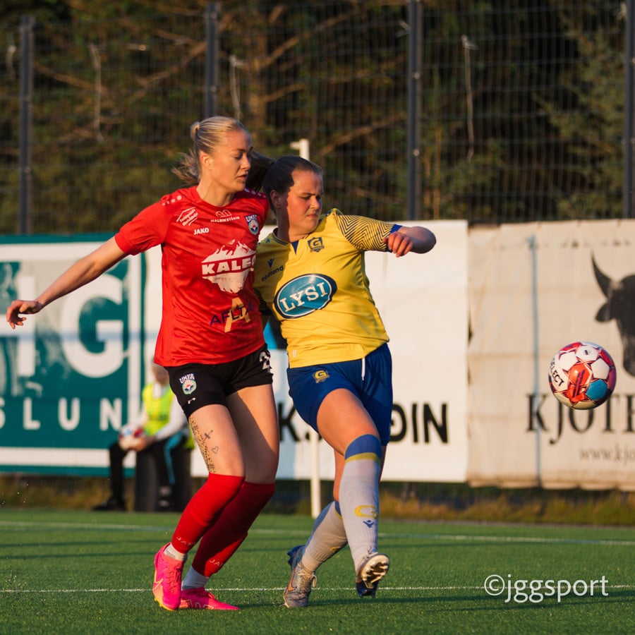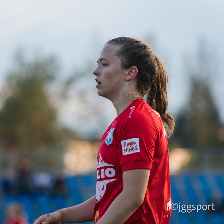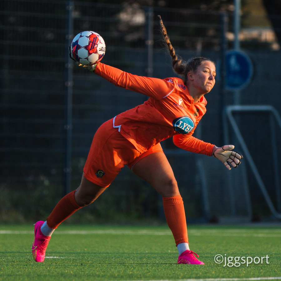 Góð sókn hjá heimakonum og Guðrún Embla reynir skot í teignum eftir fyrirgjöf, boltinn ratar ekki á markið en berst fyrir fæturna á Maya Camille sem getur ekki annað en komið boltanum yfir línuna!