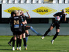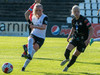 Shaina Ashouri fær boltann við vítapunkt og tekur skotið en Melissa ver frábærlega í marki gestanna.