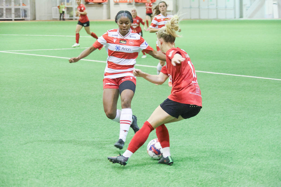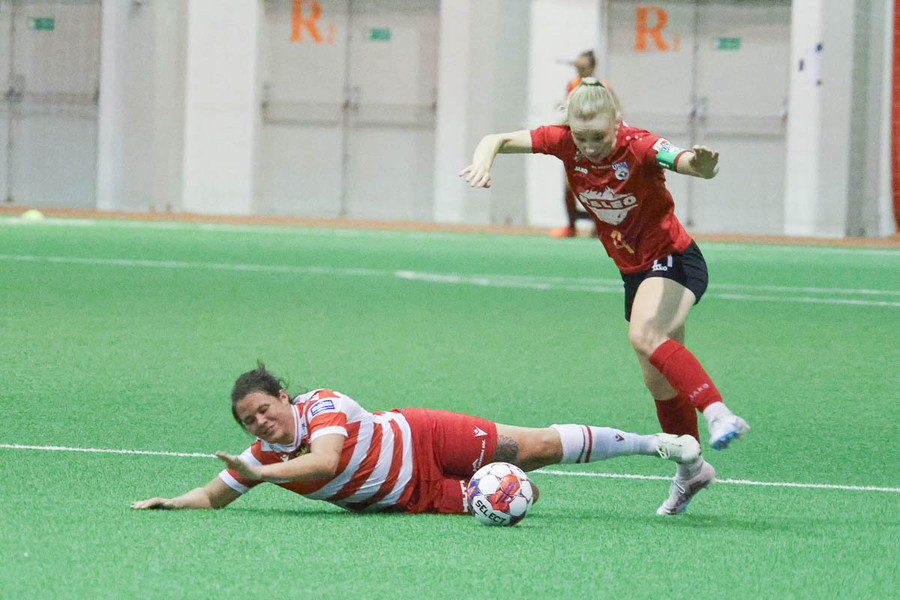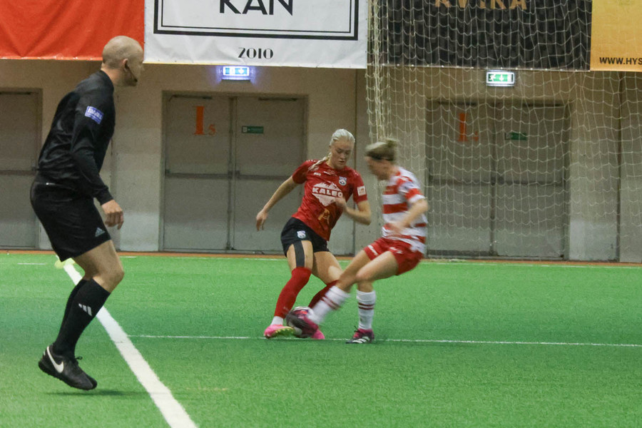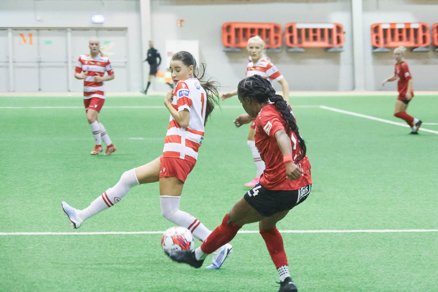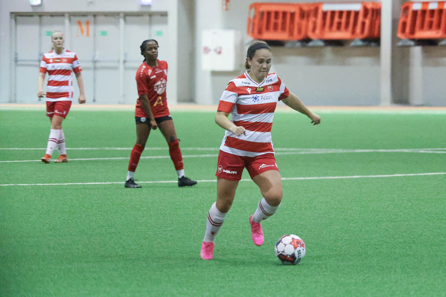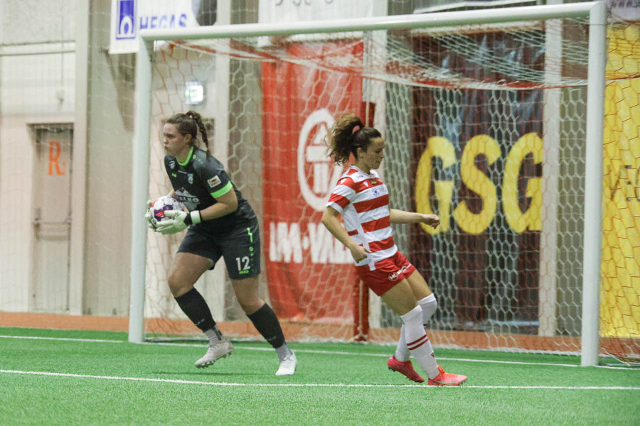 Frábært sprettur nniður hægri kantinn hjá Chaylyn. Sendir hann fyrir en eva hirðrir hann í markinu.