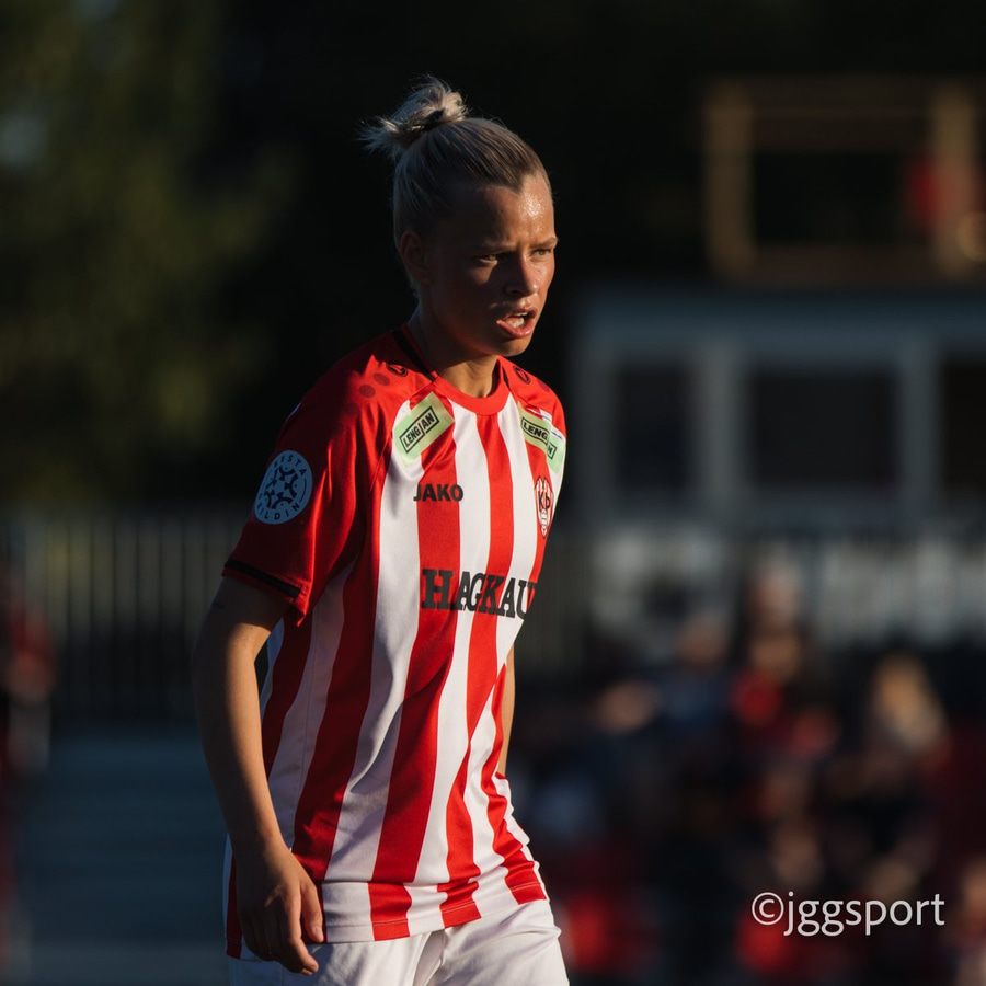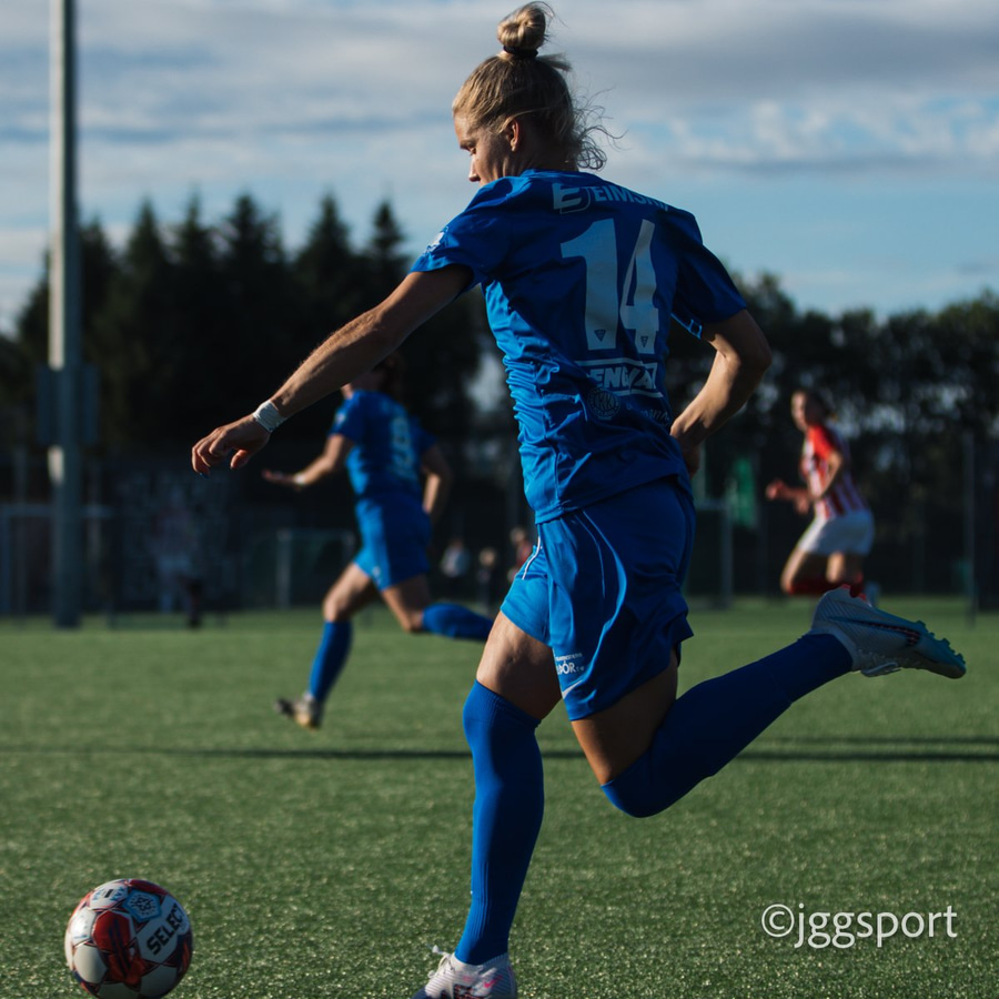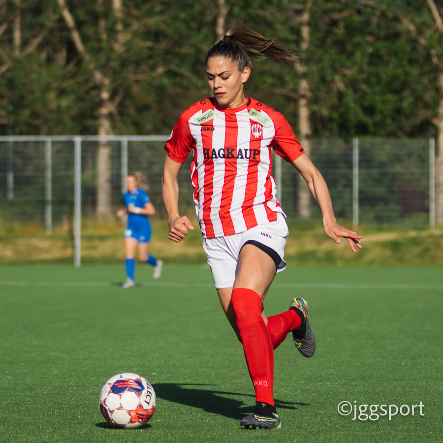 Tanya gerir stórkostlega og á sendingu fyrir markið þar sem Freyja Karín er alein en setur boltann fram hjá.
