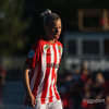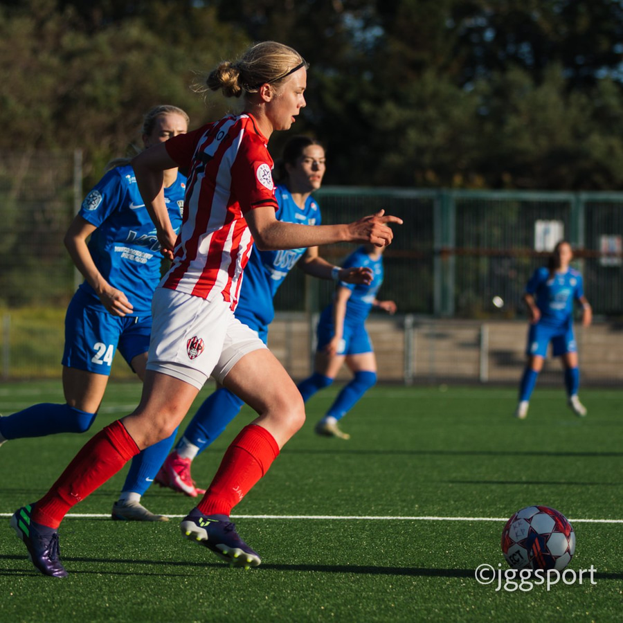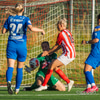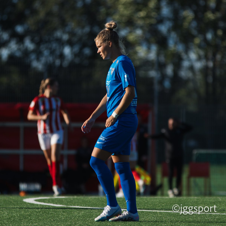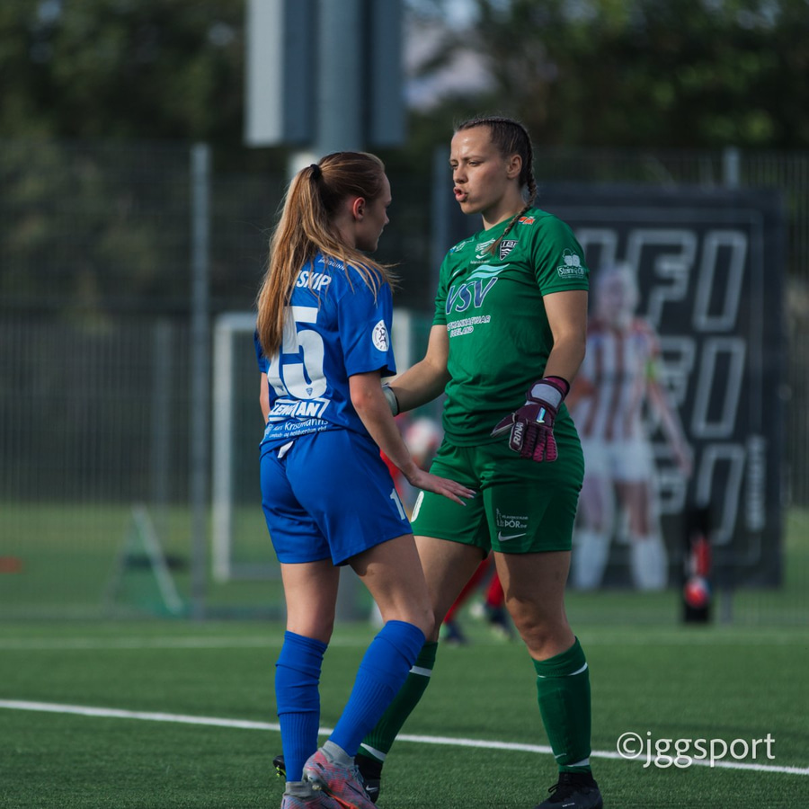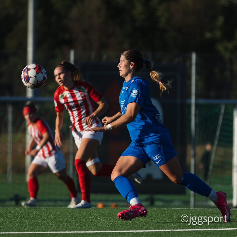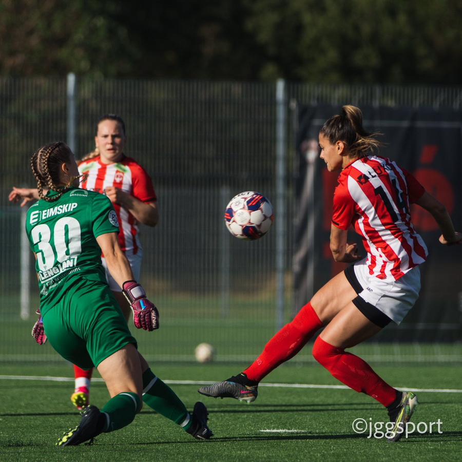 Chloe með hættulegan bolta fyrir núna en Íris gerir vel í að koma út. Hún er á undan Caeley í boltann.