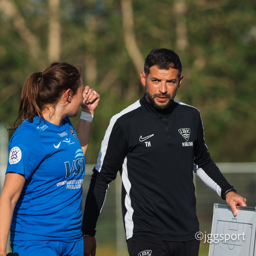 Þróttur reynir og reynir að koma boltanum inn á teiginn, en Eyjakonur eru góðar í að koma honum frá.