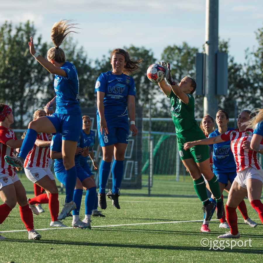Núna grípur Guðný ekki en það er enginn Þróttari mættur til að skila boltanum í netið.