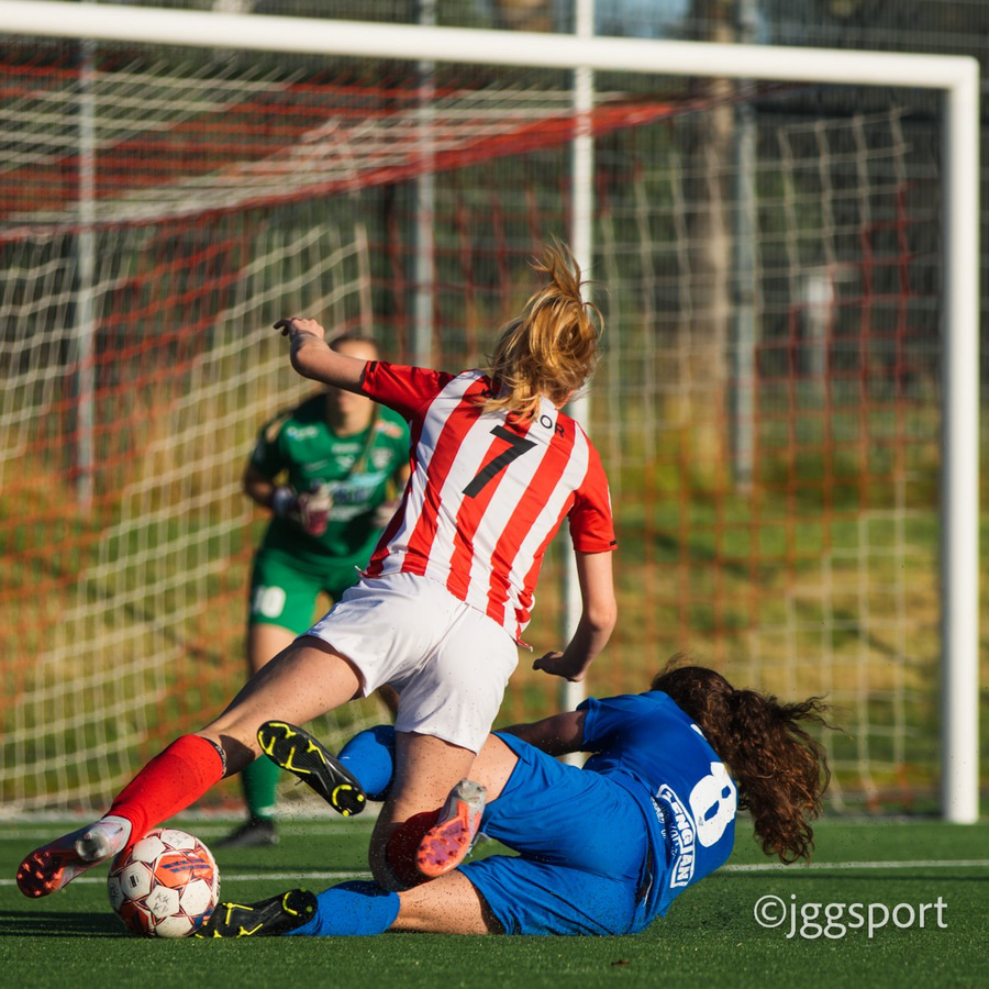 Sierra með flottan sprett en skot hennar að marki er laflaust. Var í litlu jafnvægi og mögulega hefði verið hægt að flauta brot á þetta.