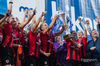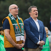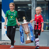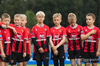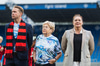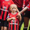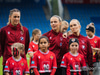 80 iðkenndur frá hvoru liði umkringja liðin út á velli.