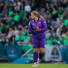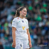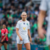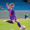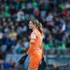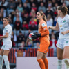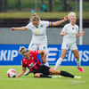 Flottur bolti fyrir markið en þær ná ekki að ráðast á boltann. Katrín Ásbjörns hársbreidd frá því að ná að pikka í boltann.