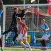 Eftir að hafa haldið lengi í boltann finna Þróttarar Eirík í hlaupið á hægri kantinum. Eiríkur kemur þá með geggjaðan bolta fyrir í lappirnar á Kára sem klárar færir. Þetta var alls ekki öruggt hjá Kára. Skotið fer niður í nærhornið sem Stefán ver einhvernveginn í stöngina og inn. Klaufalegt hjá Stefáni.