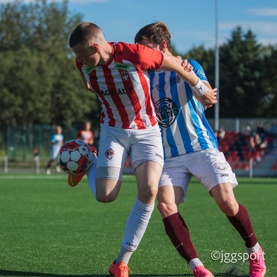 Frábært hlaup hjá Hrannari sem endar með því að hann rennur boltanum fyrir markið. Þá myndast mikið klafs inni á teignum og boltinn berst til Guðmund Tyrfings sem setur boltann í Stefán Þórð og þaðan í hendurnar á Óskari. Alveg með ólíkindum að staðan sé enn þá 0-0!