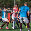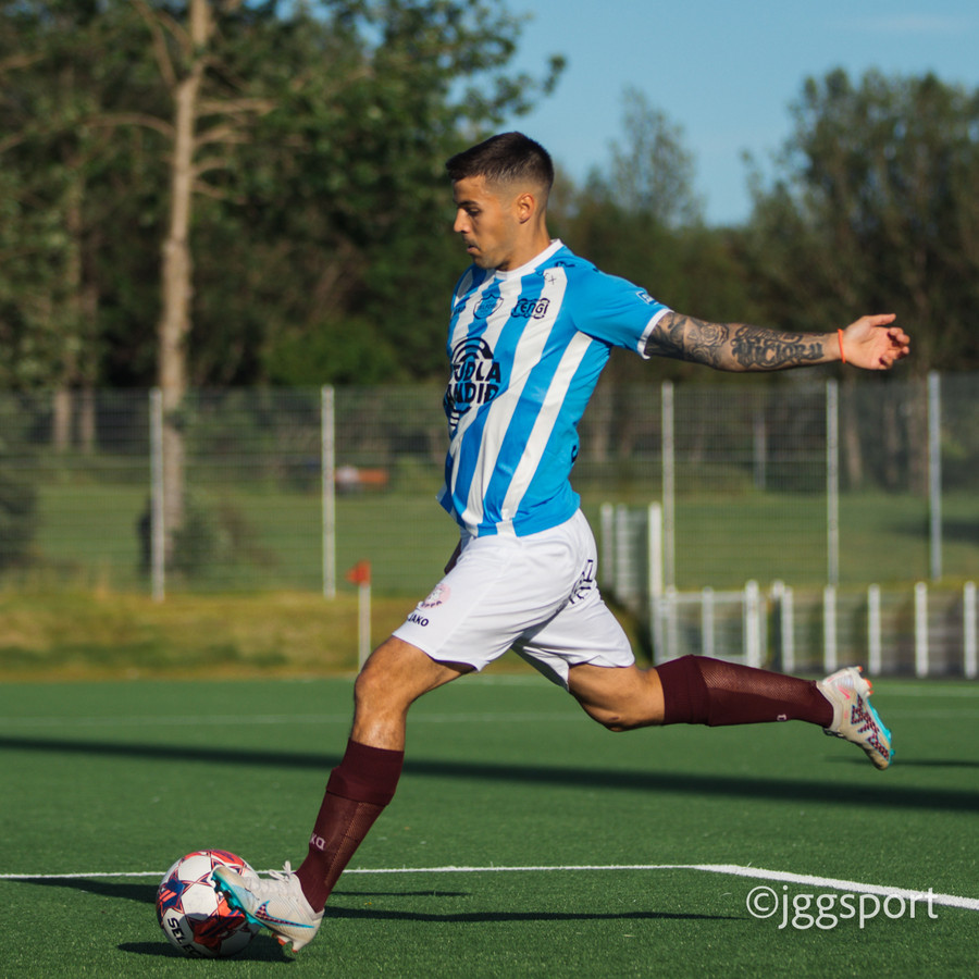 Spyrnan er slök frá Valdimari sem fer á Adrian Sanchez sem á skot beint á Óskar í markinu