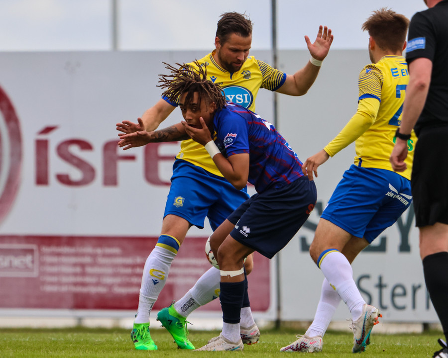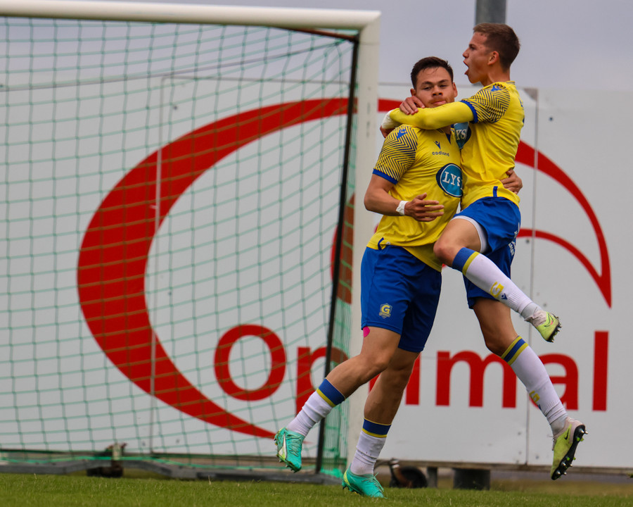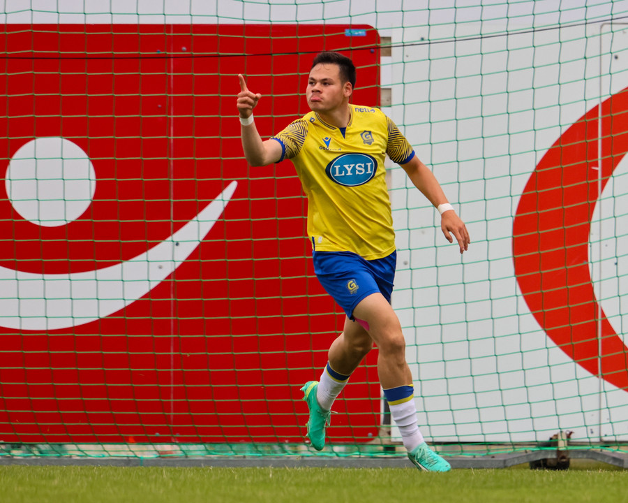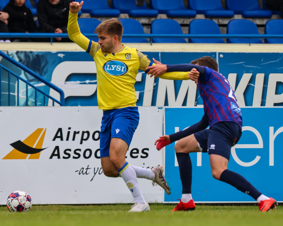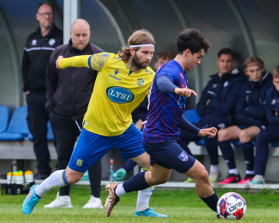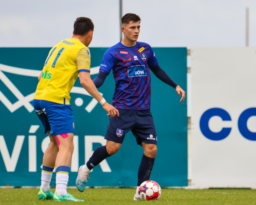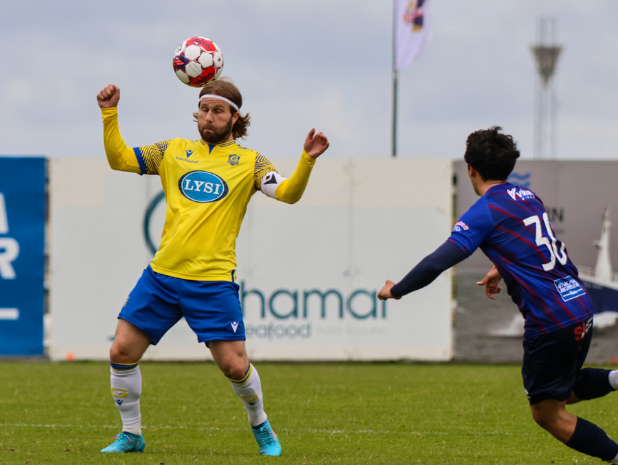 Patryk Hryniewicki með fínan skalla eftir aukaspyrnu frá Daníel Finns en hittir ekki markið.
