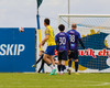 Róbert Hauksson með skalla að marki en kraftlaus og Aron Dagur með þetta allt á hreinu.