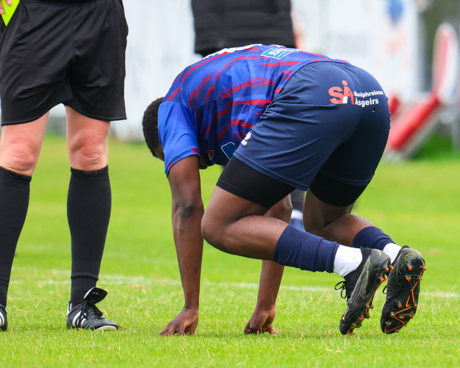 Aron Dagur missir boltann eftir fyrirgjöf frá vinstri, boltinn dettur fyrir Omar í teignum sem nær ekki að fóta sig og koma skoti á markið.