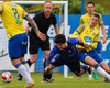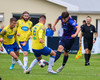 Aron Dagur fær boltann til baka, alls ekki viljandi sending en hann þorir ekki að taka boltann upp. Fær á sig pressuna og er stálheppinn að sleppa, setur boltann beint út af.